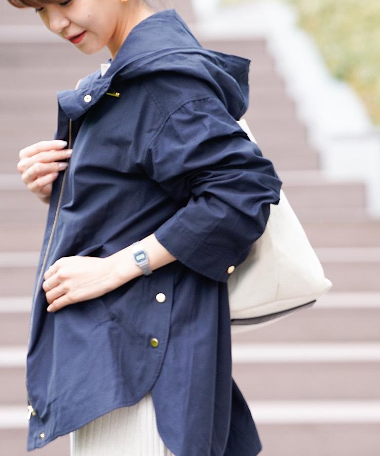 外出に重宝する、ミドル丈の軽いマウンテンパーカー