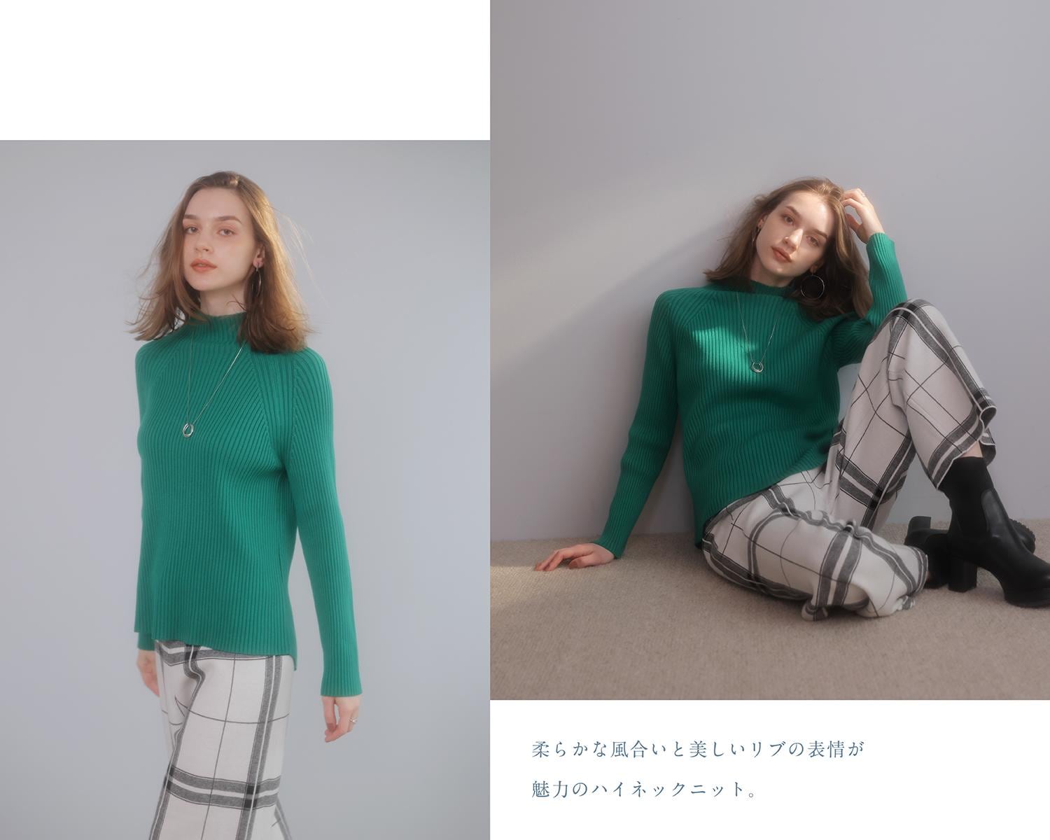 静けさの中に、芯のある美しさを。上品に映えるリブハイネックニット。