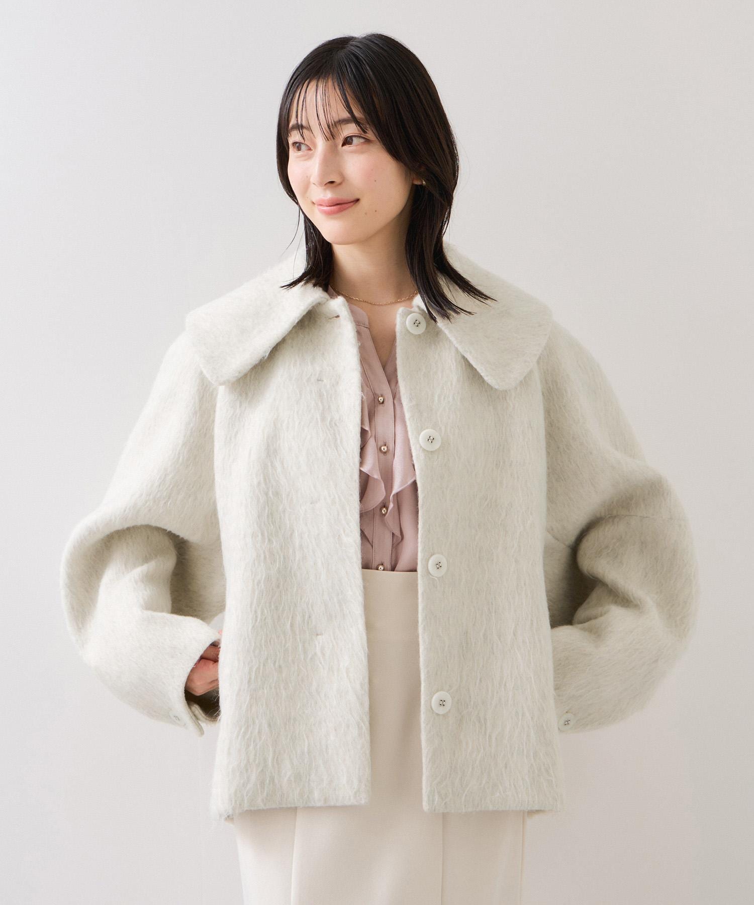 ・柔らかく女っぽい印象のジャギー素材を使用。