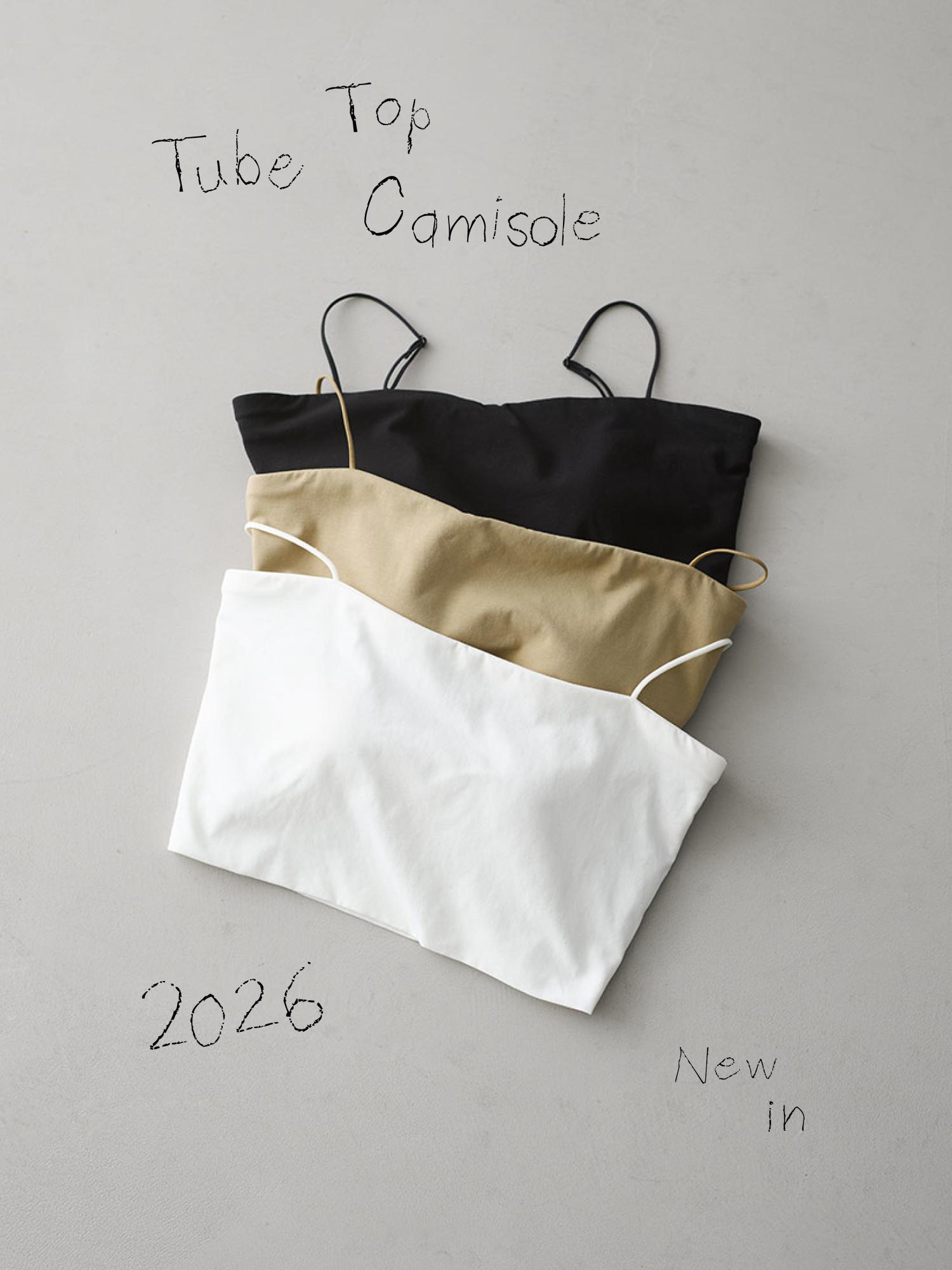 コンパクトな丈感で、スタイリッシュなスタイリングにも合わせられるカップインチューブトップキャミソール。着用時に胸元のラインがストレートになるようにデザインし、ヘルシーに着こなせる1枚に仕上げました。