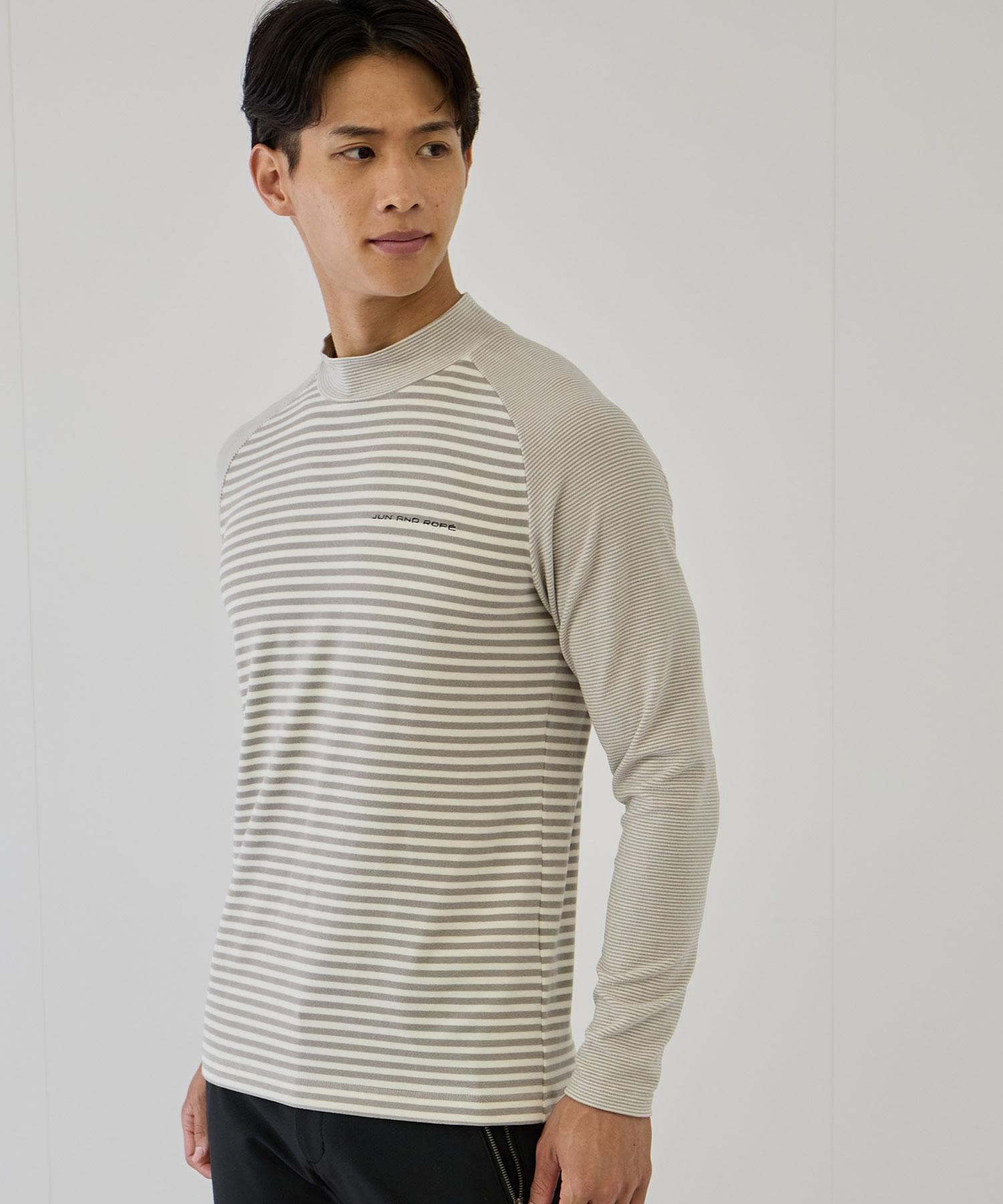 ボーダーミックスハイネック長袖シャツ