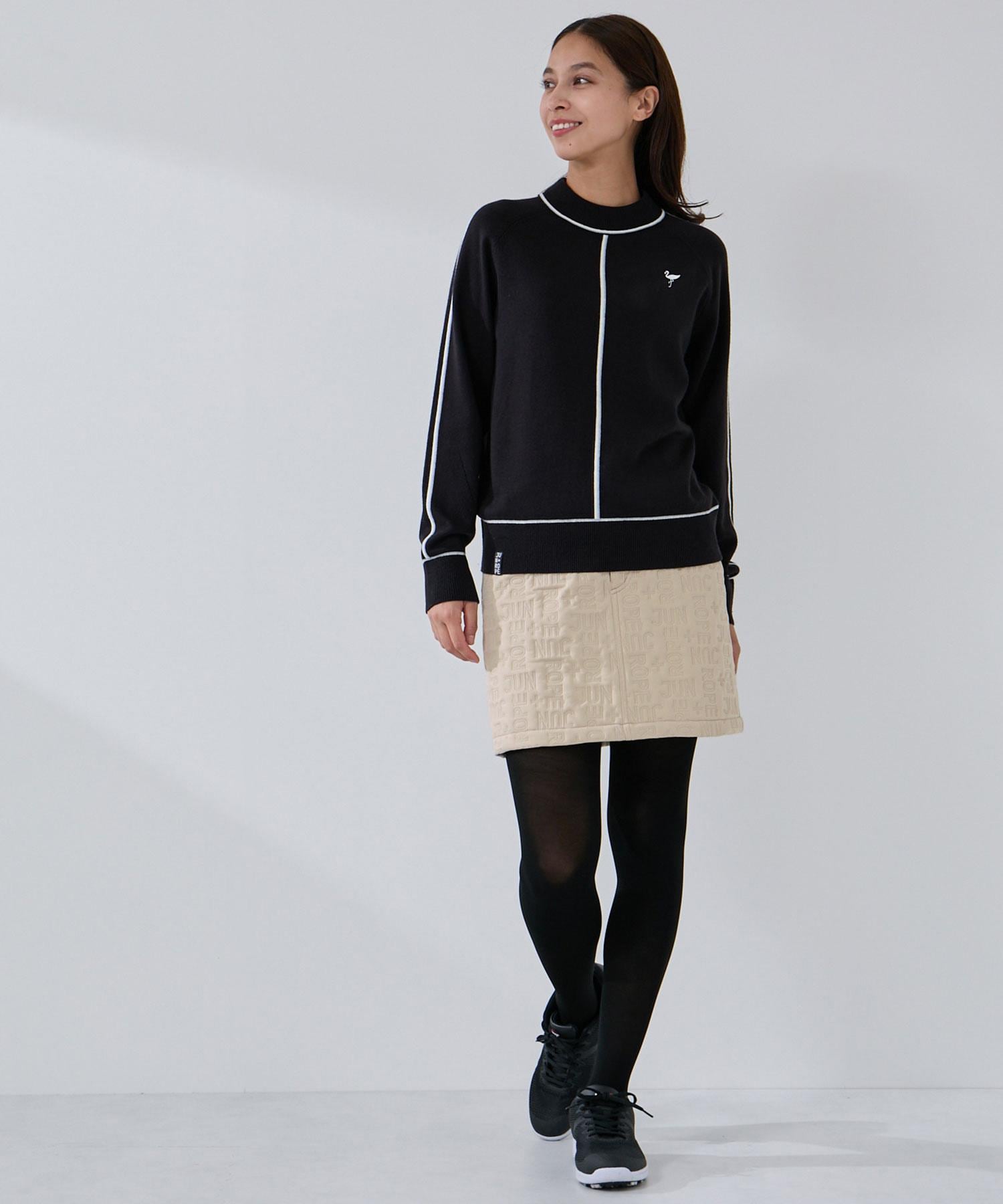 ほどよいリブ感がすっきりと見せてくれる、配色アクセントが効いたタートルネックニット。