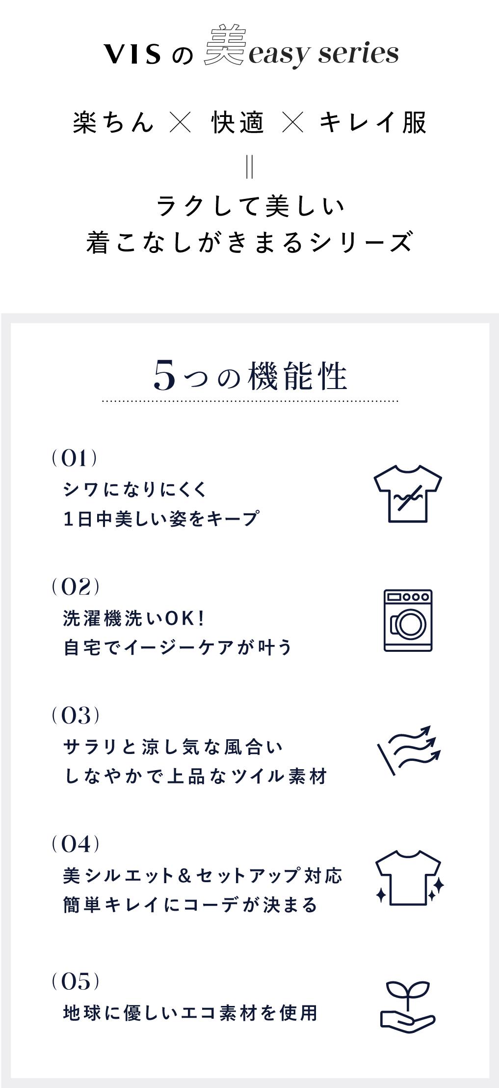 美easy series|COMFORT TWLL 2026.01.21 働く日も、休日も、特別な日も。着るだけで美しく決まる、VISの名品「美easy series - Comfort Twill」。 累計40万枚突破。すべてのシーンに、美しくフィット。 美シルエットと機能性を兼ね備えたジャケット&パンツが、オンにもオフにも、そしてセレモニーにも対応。 着る人の毎日を、簡単に、きれいにアップデートします。 WORK HOLIDAY CEREMONY OUTFIT 美easy CONFORT|JACKET ¥8,899 (tax in) BUY 美easy CONFORT|SHIRT ¥6,589 (tax in) BUY 美easy CONFORT|PANTS ¥5,929 (tax in) BUY BAG ¥6,919 (tax in) BUY OUTFIT 美easy CONFORT|JACKET ¥8,899 (tax in) BUY SHIRT ¥5,489 (tax in) BUY SKIRT ¥5,929 (tax in) BUY BAG ¥5,929 (tax in) BUY SHOES ¥7,909 (tax in) BUY OUTFIT 美easy CONFORT|PANTS ¥5,929 (tax in) BUY JACKET ¥8,899 (tax in) BUY TOPS ¥5,489 (tax in) BUY BAG ¥5,929 (tax in) BUY SHOES ¥7,909 (tax in) BUY OUTFIT 美easy CONFORT|PANTS ¥5,929 (tax in) BUY JACKET ¥9,999 (tax in) BUY TOPS ¥6,589 (tax in) BUY BAG ¥5,929 (tax in) BUY SHOES ¥7,909 (tax in) BUY OUTFIT 美easy CONFORT|JACKET ¥8,899 (tax in) BUY TOPS ¥6,589 (tax in) BUY PANTS ¥8,899 (tax in) BUY BAG ¥6,919 (tax in) BUY OUTFIT 美easy CONFORT|JACKET ¥8,899 (tax in) BUY 美easy CONFORT|SHIRT ¥6,589 (tax in) BUY 美easy CONFORT|PANTS ¥5,929 (tax in) BUY BAG ¥5,489 (tax in) BUY OUTFIT 美easy CONFORT|PANTS ¥5,929 (tax in) BUY GILET ¥7,909 (tax in) BUY SHIRT ¥5,929 (tax in) BUY BAG ¥6,919 (tax in) BUY SHOES ¥7,909 (tax in) BUY コンフォートシリーズ LINE UP VIS 【美easy】コンフォート金ボタンジャケット/イージーケア・UVケア・セットアップ対応 ¥8,899(税込) VIS 【美easy】コンフォートボウタイドッキングシャツ/イージーケア・2WAY ¥6,589(税込) VIS 【美easy】コンフォートストレートワイドパンツ/イージーケア・UVケア・セットアップ対応 ¥5,929(税込) VIS 【WEB限定】美easyコンフォートツイルペプラム切替キャミワンピース/イージーケア・UVケア ¥8,899(税込) その他「美easyシリーズ」 LINE UP 30%OFF VIS 【WEB限定】【美easy】ウーリッシュ ペプラム切替キャミワンピース【洗える】 ¥6,229(税込) VIS 美easyウーリッシュリボンビスチェドッキングカットソープルオーバー/セットアップ対応・イージーケア ¥5,929(税込) 10%OFF VIS 美easyウーリッシュマーメイドスカート/セットアップ対応・イージーケア ¥5,929(税込) 10%OFF VIS 美easyウーリッシュワンタックワイドパンツ【セットアップ対応/洗える】 ¥5,929(税込) 10%OFF VIS 美easyウーリッシュダブルブレストテーラードジャケット【セットアップ対応/洗える】 ¥8,009(税込) 40%OFF VIS 【美easy】ウーリッシュチュニック丈ビスチェ【セットアップ対応/洗える】 ¥3,953(税込) VIS TOPへ戻る OUTDOOR PRODUCTS | VIS NEW SERIES BAG COLLECTION 定番のカジュアルに、VISらしいフェミニンさをプラス。 軽さと実用性はそのままに、 さりげない甘さを添えた別注バッグ全3型が登場。 Heart collection 見るたびに心ときめく、ハートモチーフとピンクの彩り。 さりげなく効かせたハートと、柔らかなピンクカラーなら甘すぎないデザインで、大人の装いにも自然にフィット。 「Heart collection」ならデイリーコーデに“可愛い”を添えて、旬のムードを楽しめます。 【FINAL SALE】1/28(水)更新セールアイテム MAX70%OFF!狙い目アイテム多数登場のWINTER SALE開催中♪ この冬大活躍のアウター、ニット、カーディガンなどなど手に入れていきたいアイテムまでプライスダウン。 さらに、春まで使えるブラウスやカットソーなど、お得にGETできるチャンス。 お見逃しなく。 Spring Tops Edit|主役トップス図鑑 6選 ― 1枚で、いつものコーデが見違える ― シンプルになりがちな季節こそ、頼りたいのは“着るだけで完成する主役トップス”。 VISがこの春おすすめするのは、デザイン性と着回し力を両立した6アイテム。 デイリーにもお仕事にも活躍する、今すぐ取り入れたい最旬トップスを揃えました。 HELLO KITTY ♡ VIS バレンタインシーズンに向けたコラボレーションアイテムが登場! 『大切な人とのデートの日に向けて、少し大人っぽくおめかしするハローキティとディアダニエル』をテーマに展開。 「VIS」の人気バッグをベースに、描き下ろしデザインの「ハローキティ」や、ふたりが寄り添うデートシーンをさりげなく落とし込んだ、フェミニンで上品なラインアップが揃います。 美得プライス|女性らしさと美しさが賢く叶う。お値段以上のキレイ見え。 毎日のスタイリングに、妥協しない“キレイ”を、賢くお得に。 女性らしさ・スタイルアップ・上品さを、手に取りやすいプライスで叶えるVISの「美得プライス」トップス。 今買って春まで長く使える、お値段以上の優秀な7アイテムを揃えました。