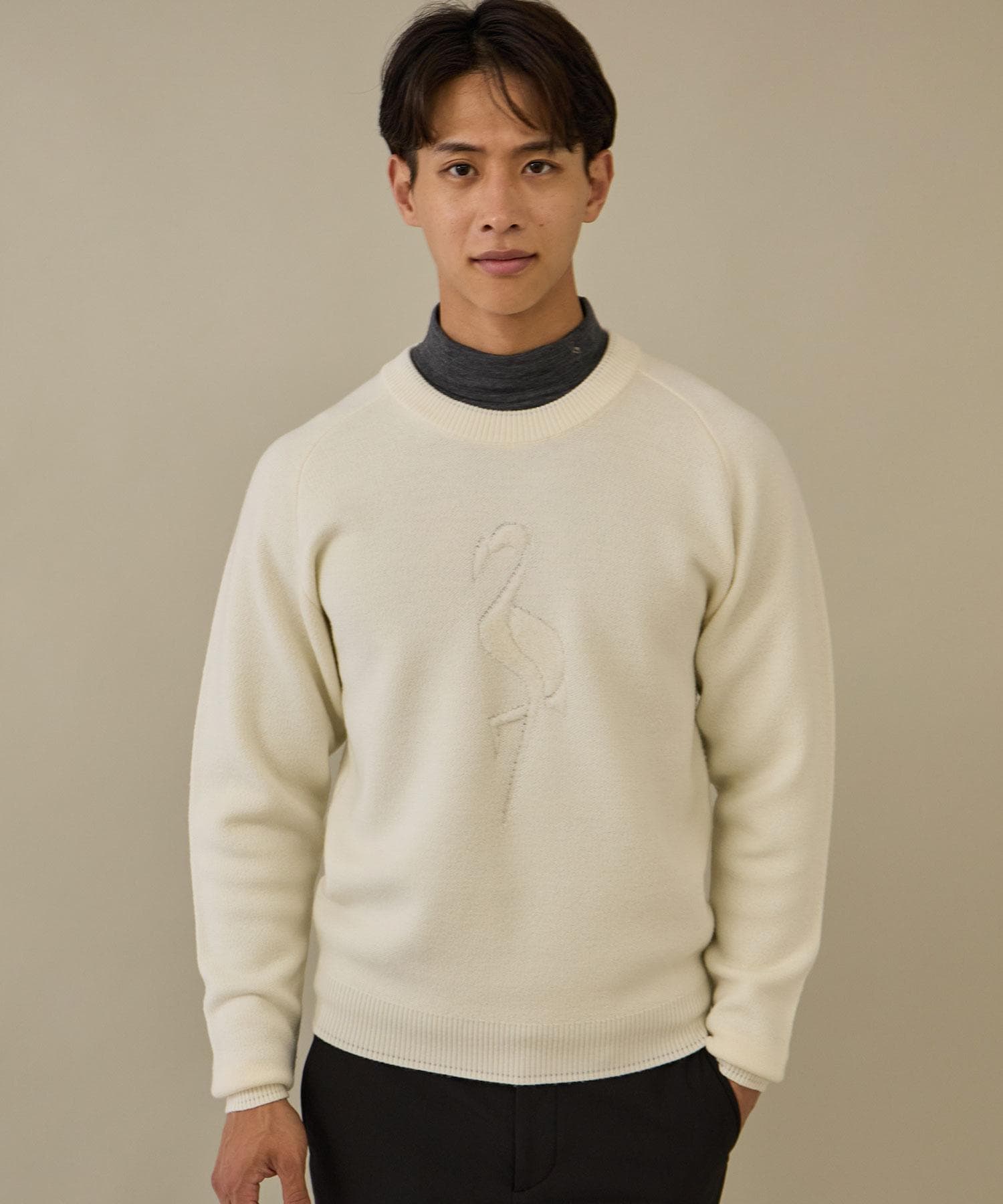 【NOIR】フラミンゴモチーフクルーネックセーター