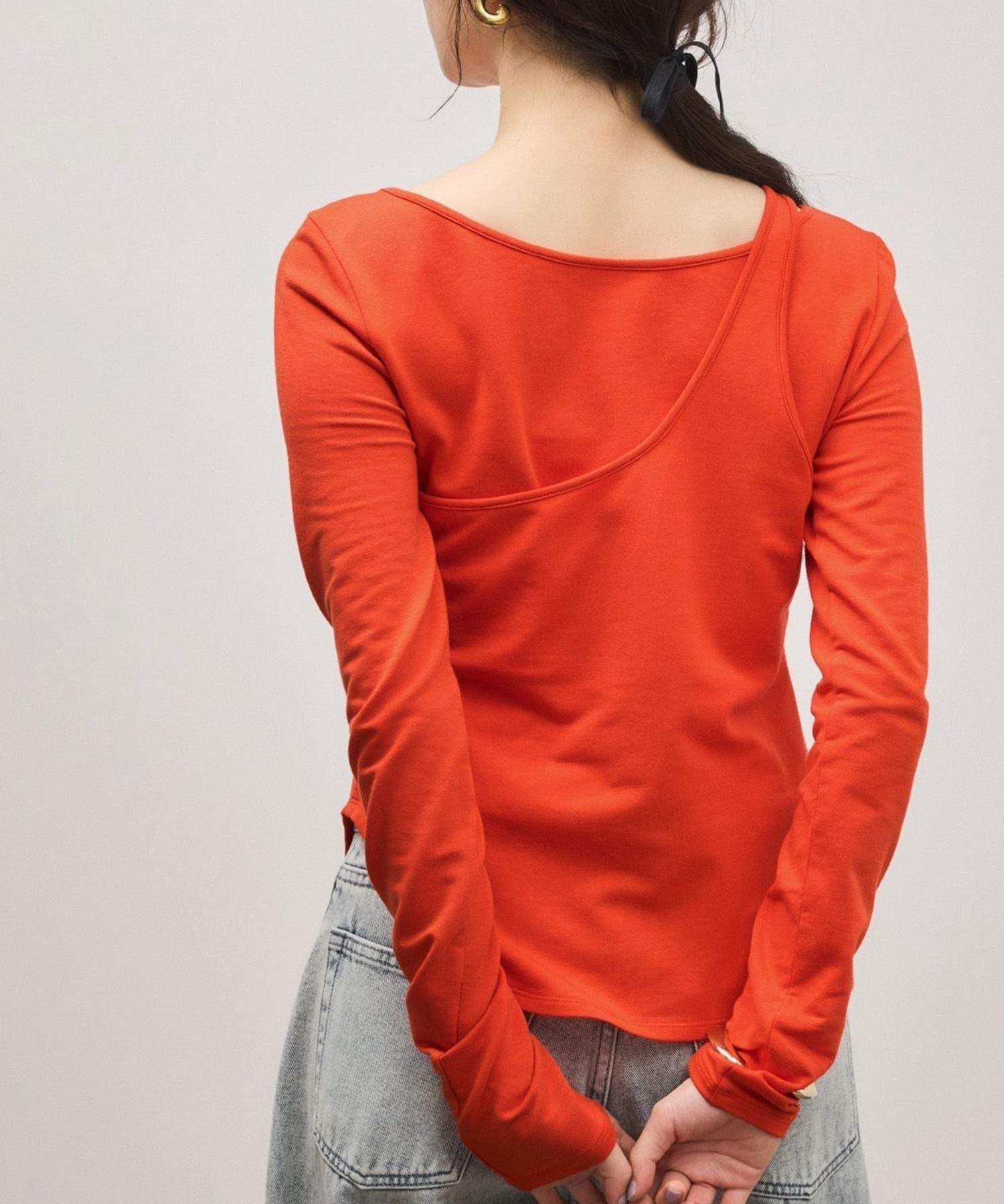 シンプルながらも華やかさを与えてくれるワンショルダーデザインが魅力。体に心地よくフィットし、バックスタイルまで美しいデザインカットソー