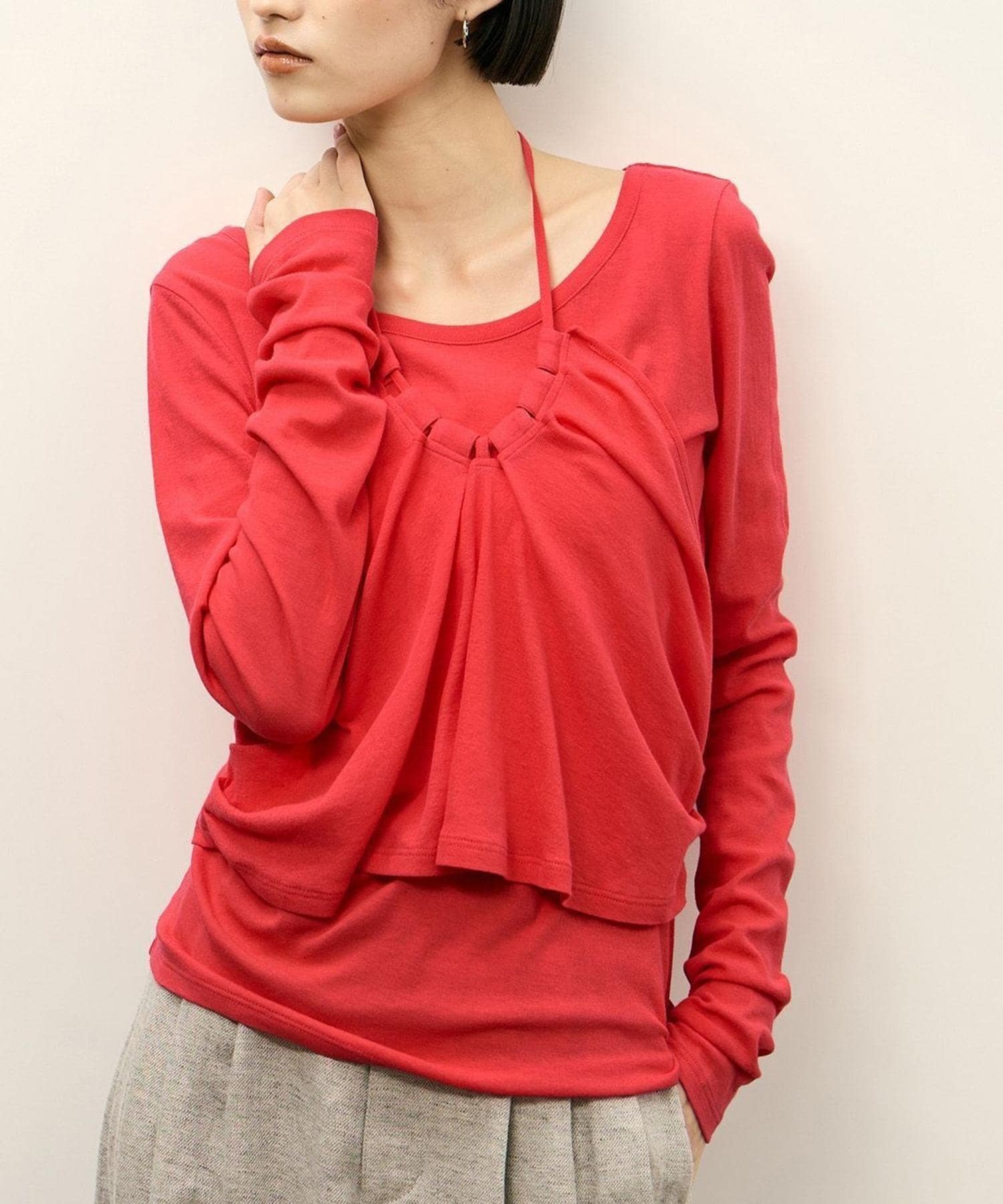 抜け感のあるホルターネックが旬なレイヤードスタイルを叶える。カジュアルさと上品さを兼備した、ドライタッチな質感がさらっと快適に過ごせるレイヤードカットソー