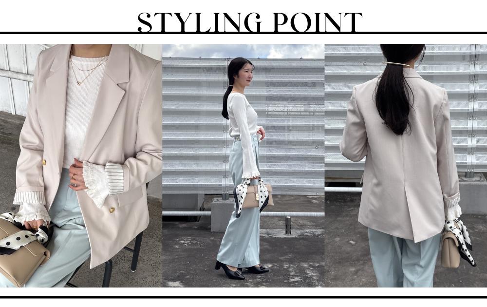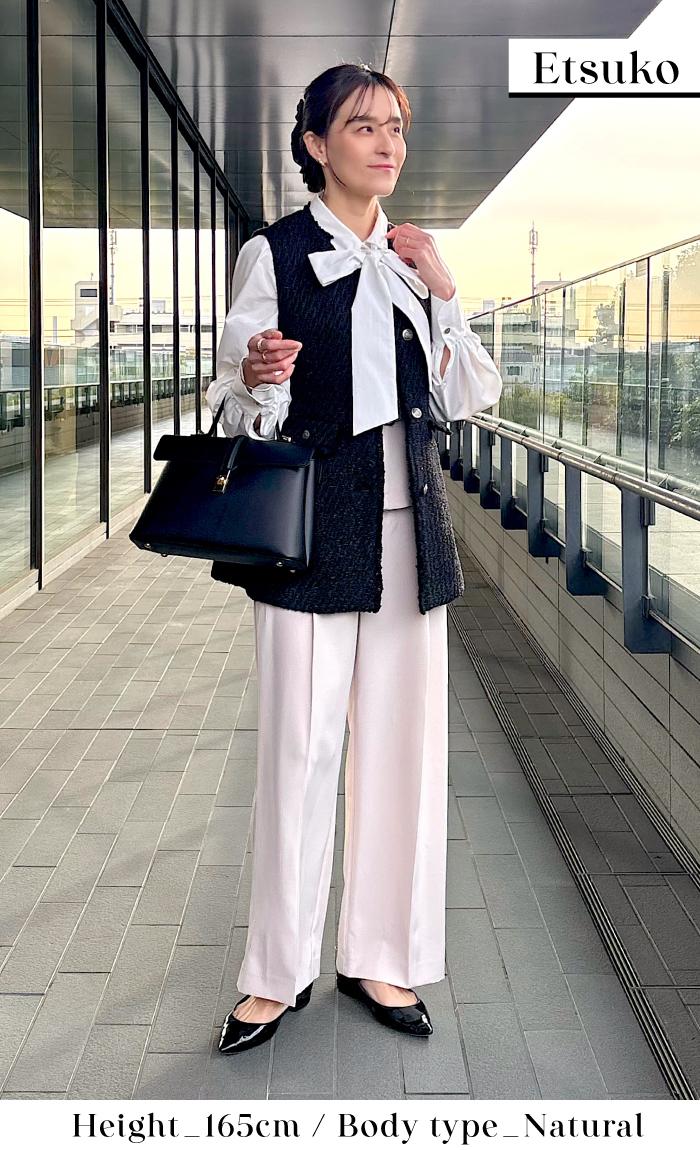 きちんと感+女性らしい好印象見えスタイルにまとめました。