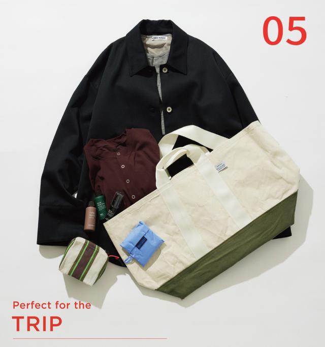 大容量で肩掛けできて、ジップ付き。三拍子そろった〈PUEBCO〉の「LAMINATED FABRICxVINTAGE FABRIC BAG」は、旅先でも活躍してくれるトートバッグ。