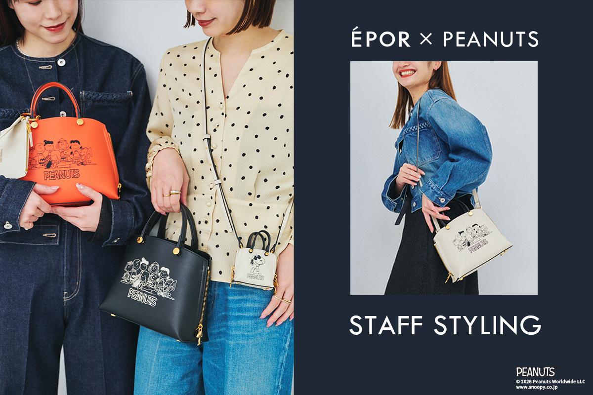 E'POR×PEANUTSのコラボレーションアイテムを取り入れて、ROPÉスタッフが自分らしく着こなします。