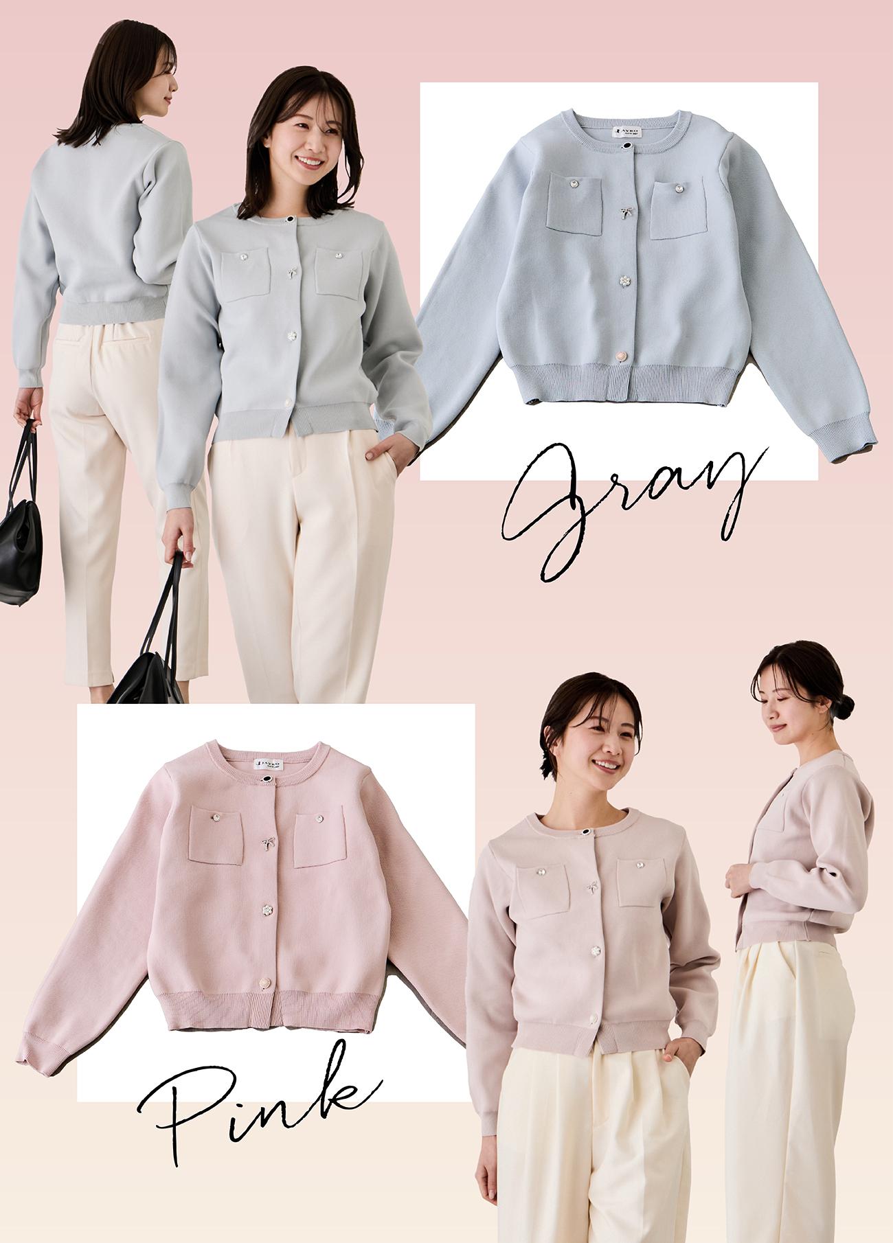 羽織るだけで華やぐ「ポケ付アソートボタンカーディガン」