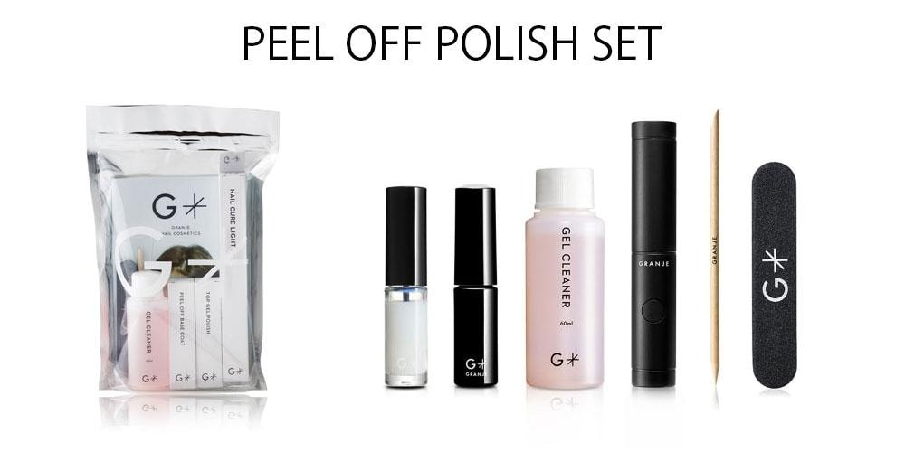 セット内容:ピールオフベースコート / トップジェルポリッシュ / ネイルキュアライト2 / ジェルクリーナー / ネイルファイル / ウッドスティック※カラージェルポリッシュは別売りとなります。