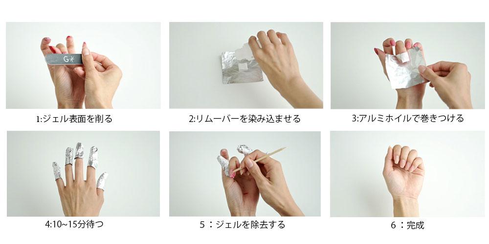 *無理にはがすと爪を傷める場合がありますので、はがれない時は2~4の工程を繰り返してください。