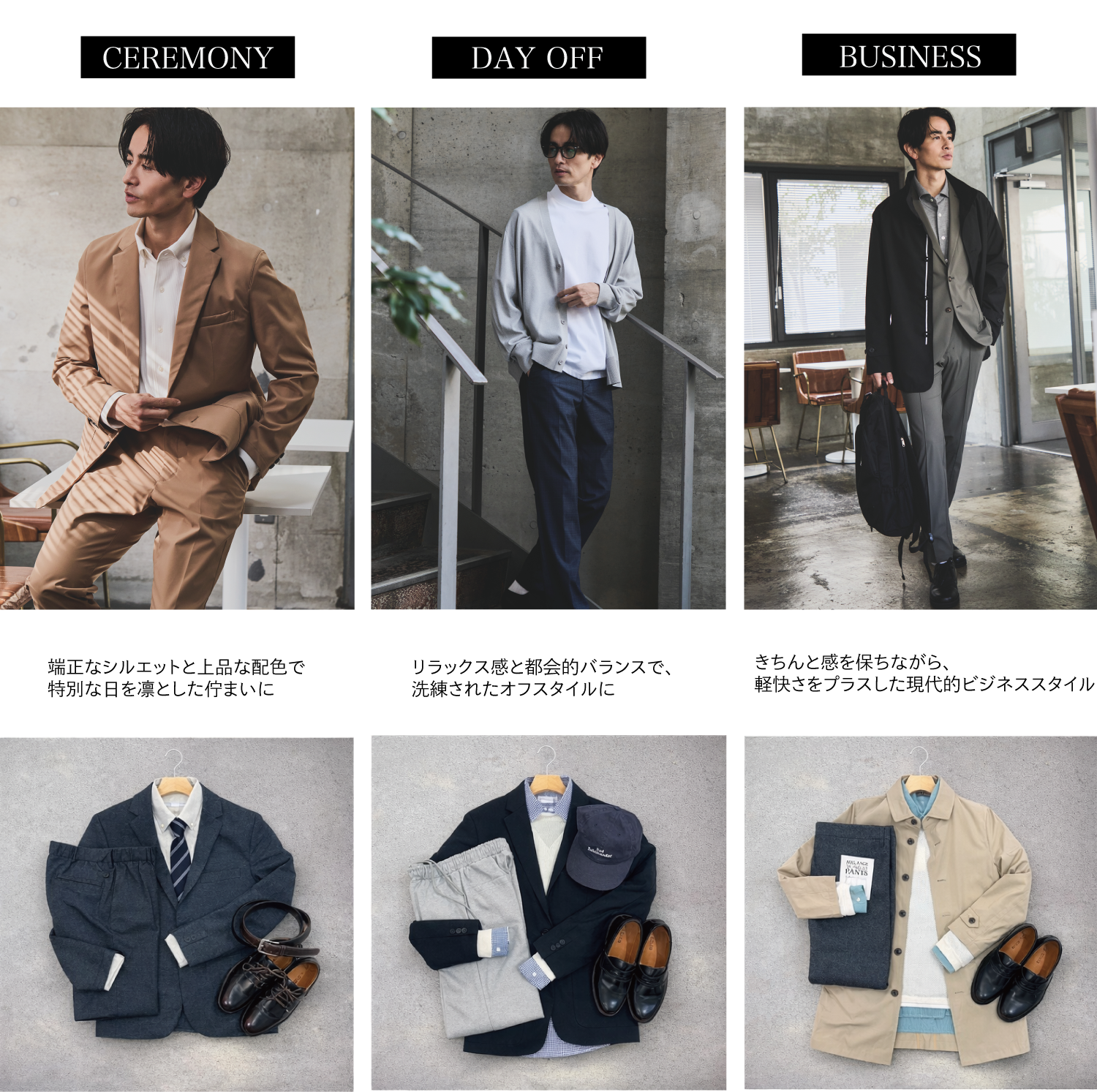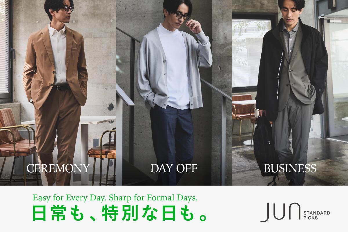 SCENE SWITCH STYLE ― 3つのシーンをつなぐITEM ― 2026.02.27 セレモニーからデイオフ、ビジネスまで、合わせ方次第で表情を変える万能アイテム。 品よく、軽やかに、日常にフィットするスタイルをご提案します。 LINE UP JUN STANDARD PICKS ミラノリブGOOD FITパンツ/セットアップ対応 ¥15,400(税込) JUN STANDARD PICKS ミラノリブGOOD FITジャケット/セットアップ対応 ¥15,400(税込) JUN STANDARD PICKS ミラノリブGOOD FITジャケット/セットアップ対応 ¥15,400(税込) JUN STANDARD PICKS ミラノリブGOOD FITジャケット/セットアップ対応 ¥15,400(税込) JUN STANDARD PICKS シルキータッチVNプルオーバー ¥6,600(税込) JUN STANDARD PICKS シルキータッチVNプルオーバー ¥6,600(税込) JUN STANDARD PICKS シルキータッチVNプルオーバー ¥6,600(税込) JUN STANDARD PICKS ウールブレンドドライバーズニット ¥7,590(税込) JUN STANDARD PICKS ウールブレンドドライバーズニット ¥7,590(税込) JUN STANDARD PICKS アルティマイタリアンカラーシャツ ¥6,600(税込) JUN STANDARD PICKS アルティマイタリアンカラーシャツ ¥6,600(税込) JUN STANDARD PICKS アルティマイタリアンカラーシャツ ¥6,600(税込) JUN STANDARD PICKS ブライトダブルジャージスラックス/セットアップ対応 ¥7,590(税込) JUN STANDARD PICKS ブライトダブルジャージスラックス/セットアップ対応 ¥7,590(税込) JUN STANDARD PICKS ブライト ダブルジャージージャケット/セットアップ対応 ¥10,890(税込) JUN STANDARD PICKS ブライト ダブルジャージージャケット/セットアップ対応 ¥10,890(税込) JUN STANDARD PICKS スリーレイヤーファブリックスラックス/セットアップ対応 ¥8,690(税込) JUN STANDARD PICKS スリーレイヤーファブリックスラックス/セットアップ対応 ¥8,690(税込) JUN STANDARD PICKS スリーレイヤードファブリックジャケット/セットアップ対応 ¥12,100(税込) JUN STANDARD PICKS スリーレイヤードファブリックジャケット/セットアップ対応 ¥12,100(税込) JUN STANDARD PICKS ナイロンストレッチスプリングコート ¥12,100(税込) JUN STANDARD PICKS ナイロンストレッチスプリングコート ¥12,100(税込) JUN STANDARD PICKS ナイロンストレッチスプリングコート ¥12,100(税込) JUN STANDARD PICKS シルキータッチプレーティングポロ ¥6,600(税込) 予約 JUN STANDARD PICKS シルキータッチプレーティングポロ ¥6,600(税込) 予約 JUN STANDARD PICKS シルキータッチプレーティングポロ ¥6,600(税込) 予約 JUN STANDARD PICKS シルキーブライトカーディガン ¥7,590(税込) JUN STANDARD PICKS シルキーブライトカーディガン ¥7,590(税込) JUN STANDARD PICKS アルティマイタリアンカラーボタンダウンシャツ ¥7,590(税込) 予約 JUN STANDARD PICKS アルティマイタリアンカラーボタンダウンシャツ ¥7,590(税込) 予約 JUN STANDARD PICKS アルティマイタリアンカラーボタンダウンシャツ ¥7,590(税込) 予約 JUN STANDARD PICKS レーヨンナイロンストレッチワイドスプレッドシャツ ¥7,590(税込) 予約 JUN STANDARD PICKS レーヨンナイロンストレッチワイドスプレッドシャツ ¥7,590(税込) 予約 JUN STANDARD PICKS レーヨンナイロンストレッチワイドスプレッドシャツ ¥7,590(税込) 予約 JUN STANDARD PICKS スモール千鳥TRポンチスラックス/セットアップ対応 ¥7,590(税込) 予約 JUN STANDARD PICKS スモール千鳥TRポンチスラックス/セットアップ対応 ¥7,590(税込) 予約 JUN STANDARD PICKS スモール千鳥TRポンチジャケット/セットアップ対応 ¥10,890(税込) 予約 JUN STANDARD PICKS スモール千鳥TRポンチジャケット/セットアップ対応 ¥10,890(税込) 予約 JUN STANDARD PICKS 撥水パラシュートボタンスタンドコート ¥9,790(税込) JUN STANDARD PICKS 撥水パラシュートボタンスタンドコート ¥9,790(税込) JUN STANDARD PICKS 軽量ナイロンストレッチピンタックスラックス/セットアップ対応 ¥13,200(税込) 予約 JUN STANDARD PICKS 軽量ナイロンストレッチピンタックスラックス/セットアップ対応 ¥13,200(税込) 予約 JUN STANDARD PICKS 軽量ナイロンストレッチジャケット/セットアップ対応 ¥19,800(税込) 予約 JUN STANDARD PICKS 軽量ナイロンストレッチジャケット/セットアップ対応 ¥19,800(税込) 予約 JUN STANDARD PICKS イタリアンカラー半袖シャツ ¥6,930(税込) 予約 JUN STANDARD PICKS イタリアンカラー半袖シャツ ¥6,930(税込) 予約 JUN STANDARD PICKS イタリアンカラー半袖シャツ ¥6,930(税込) 予約 JUN STANDARD PICKS 綿麻シャンブレーカッタウェイシャツ ¥7,700(税込) 予約 JUN STANDARD PICKS 綿麻シャンブレーカッタウェイシャツ ¥7,700(税込) 予約 JUN STANDARD PICKS 綿麻シャンブレーカッタウェイシャツ ¥7,700(税込) 予約 JUN STANDARD PICKS シアサッカースリムピンタックパンツ/セットアップ対応 ¥12,100(税込) 予約 JUN STANDARD PICKS シアサッカースリムピンタックパンツ/セットアップ対応 ¥12,100(税込) 予約 JUN STANDARD PICKS マイクロシアサッカージャケット/セットアップ対応 ¥20,900(税込) 予約 JUN STANDARD PICKS マイクロシアサッカージャケット/セットアップ対応 ¥20,900(税込) 予約 JUN STANDARD PICKS キャリーマンメランジストレッチスラックス/セットアップ対応 ¥13,200(税込) 予約 JUN STANDARD PICKS キャリーマンメランジストレッチジャケット/セットアップ対応 ¥19,800(税込) 予約 JUN ST