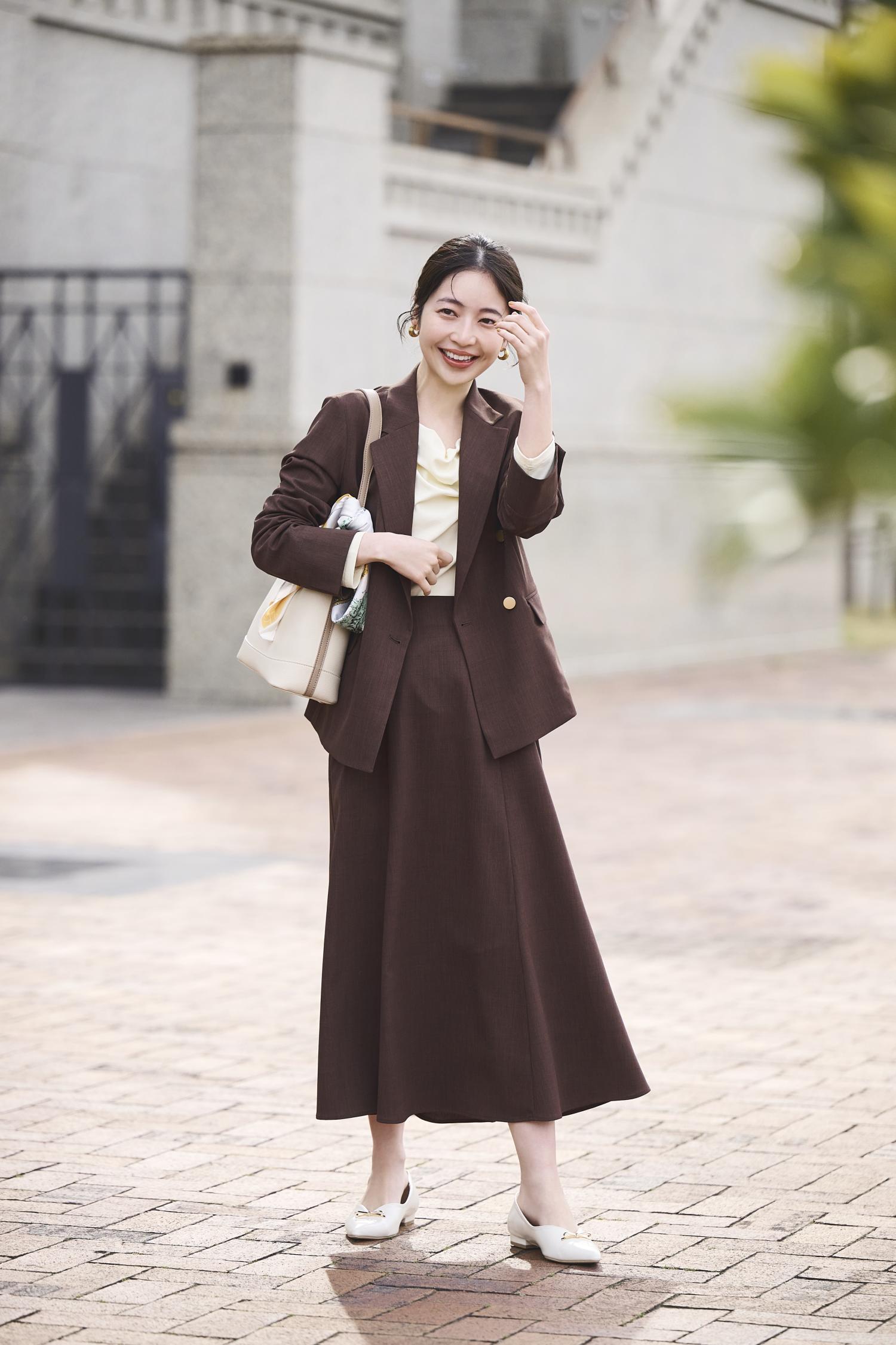 スカートセットアップで、きちんと。