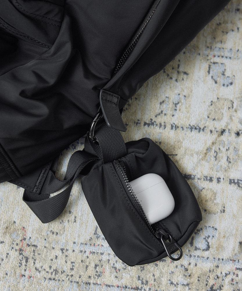 取り外し可能なカラビナチャームには、リップやイヤホンなどの小物をスマートに収納。