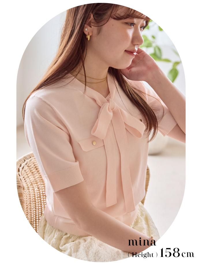 このボウタイニットの魅力は、なんといっても1枚で着映えする華やかさと、きちんと感の絶妙なバランスです。