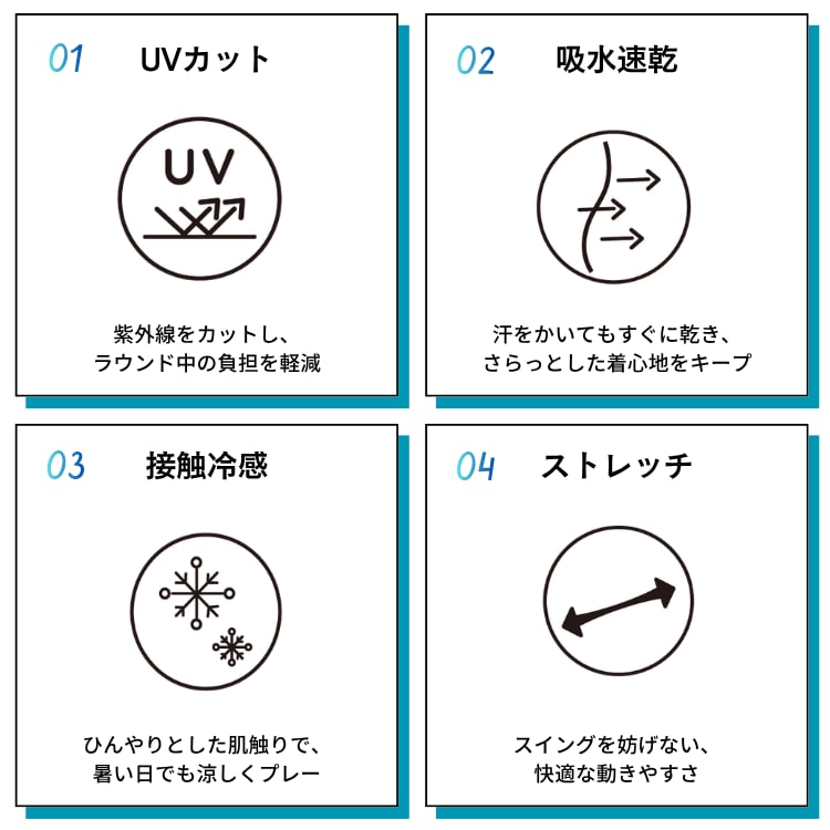 UVカット/吸水速乾/接触冷感/ストレッチなど、ゴルフの快適さを左右する機能に注目。
