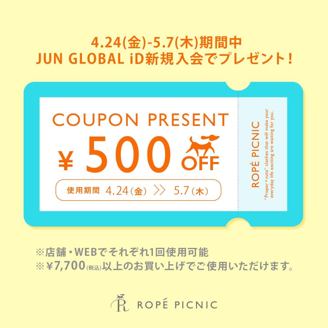 ・JUN GLOBAL IDを新規ご登録のうえ、クーポン画面を店頭でご呈示ください。