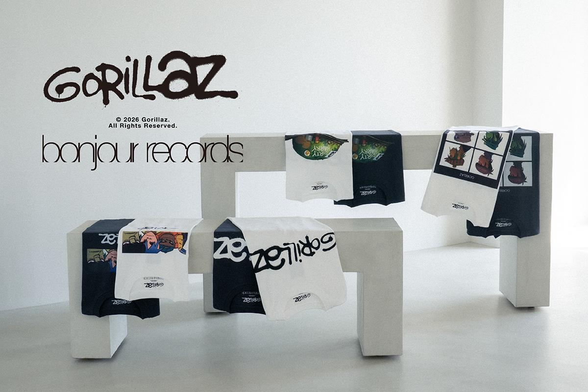 1998年、Damon Albarn(デーモン・アルバーン)とアーティストのJamie Christopher Hewlett(ジェイミー・ホーレット)によって生み出されたヴァーチャル・バンドGorillaz(ゴリラズ)とbonjour recordsのオフィシャルTシャツがJ'aDoRe JUN ONLINEにて2026年4月29日(水)より予約開始。