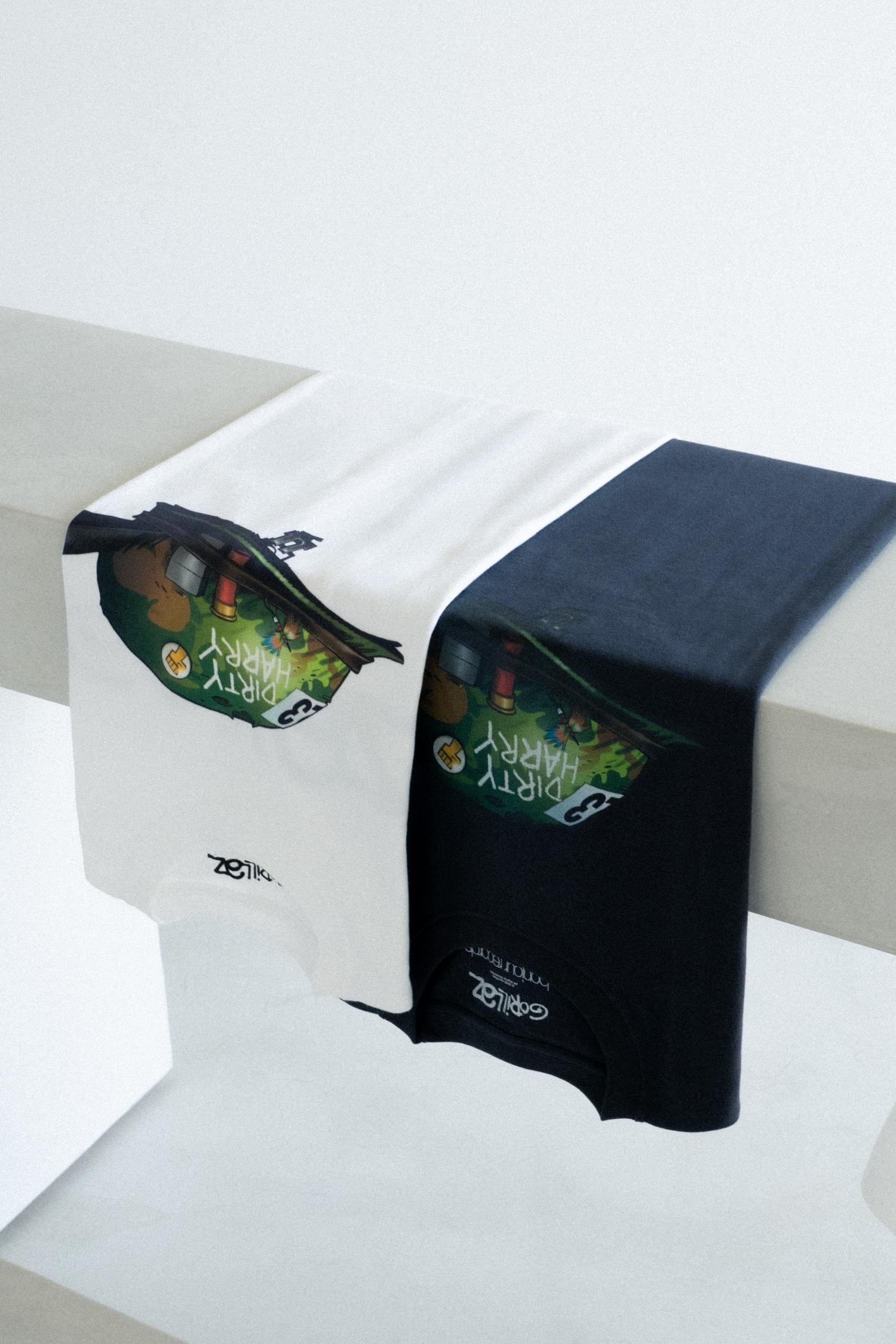2005年リリースのセカンドアルバム『DEMON DAYS』のアルバムジャケット、Noodle(ヌードル)、Russel(ラッセル)、2-D(ツーディー)、Murdoc(マードック)の4人が並ぶアートワーク、『DEMON DAYS』収録の3rdシングル「Dirty Harry」のアートワーク、Gorillazのバンドロゴデザインの計4種のラインナップ。