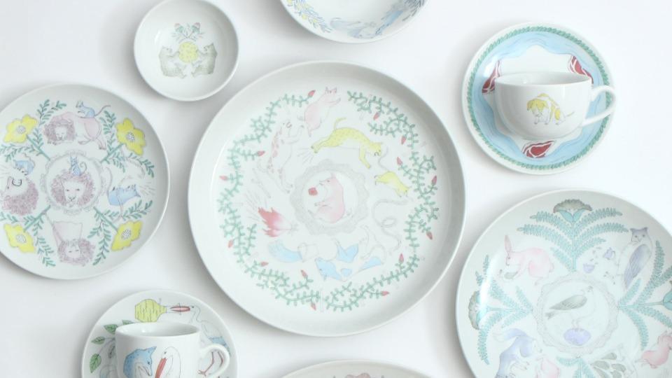 「piece of old tale」をテーマにした、イラストレーター・元永彩子デザインのテーブルウェア。使用には支障のないものの日本の厳しい基準により販売されなかった業務用食器をリメイクした、PASS THE BATONオリジナルのアイテムです。