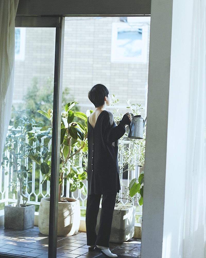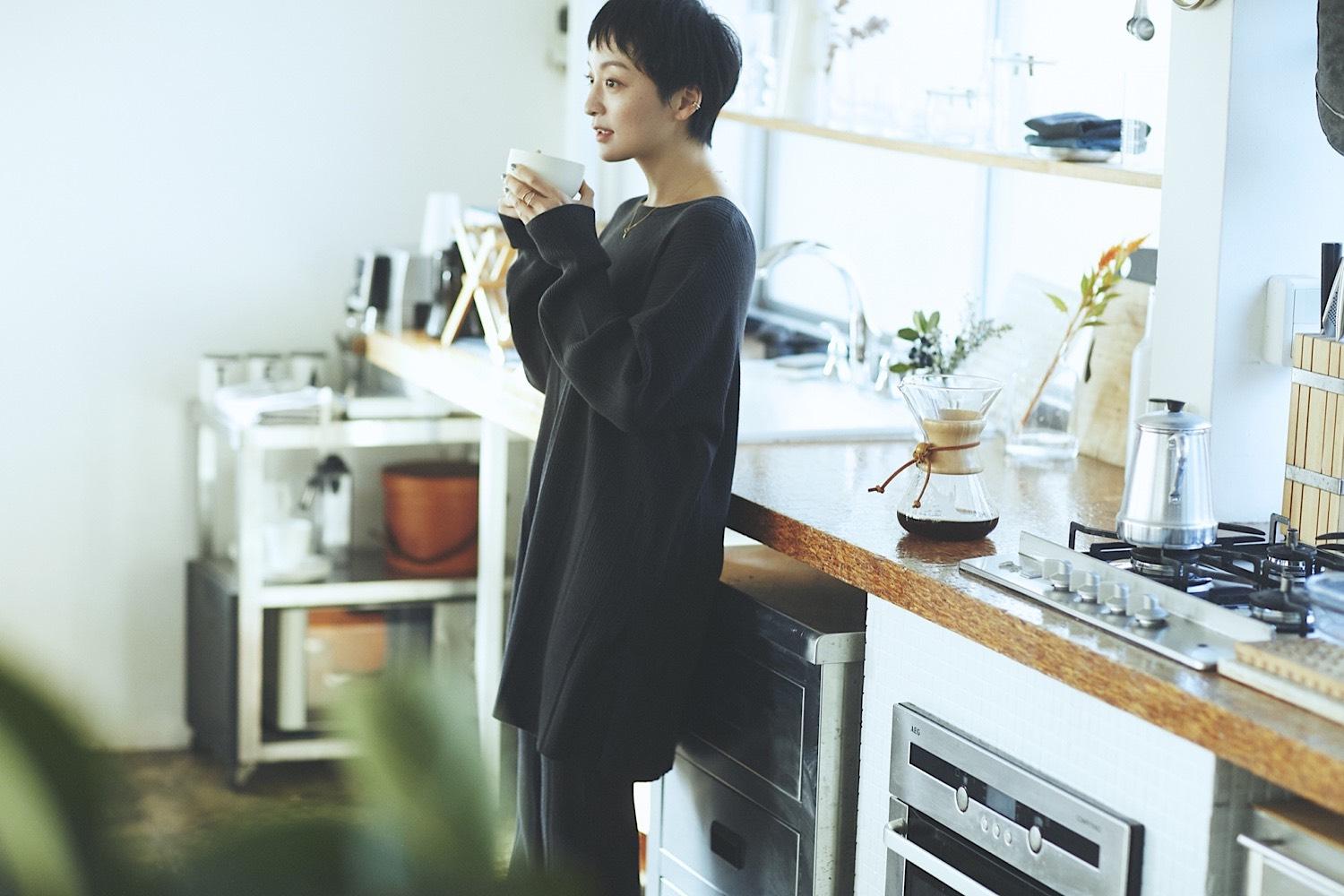 「部屋着で1日過ごす時間も、なんでもいい服ではなくて、お気に入りのリラックスウエアを選ぶと、自分の気持ちやマインドアップになりますね。お酒を飲んだり、映画をみたり本を読んだり。こういう時間も大好きです。」