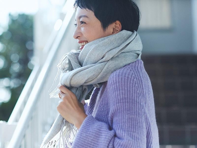 「冬ってアウターが暗くなりがちなので、明るいカラーニットは、差し色になって取り入れたくなるアイテムです。気持ちも明るくなりますよね。」