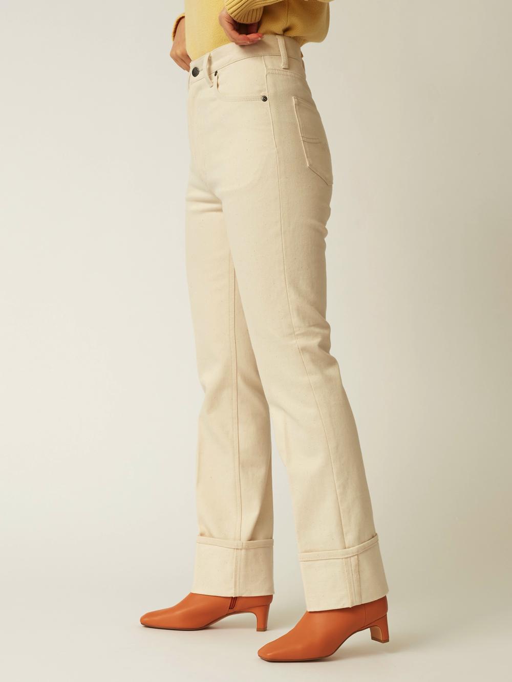 ハイウエストとセンタープレスを施し、"I ライン"を強調。スタイルアップが叶う設計に。ヒップから裾にかけてのラインや足をしなやかに見せるストレッチ素材など、女性らしいシルエットに拘りました。
