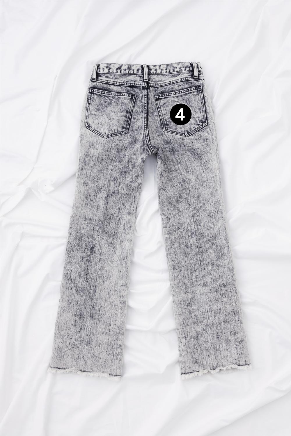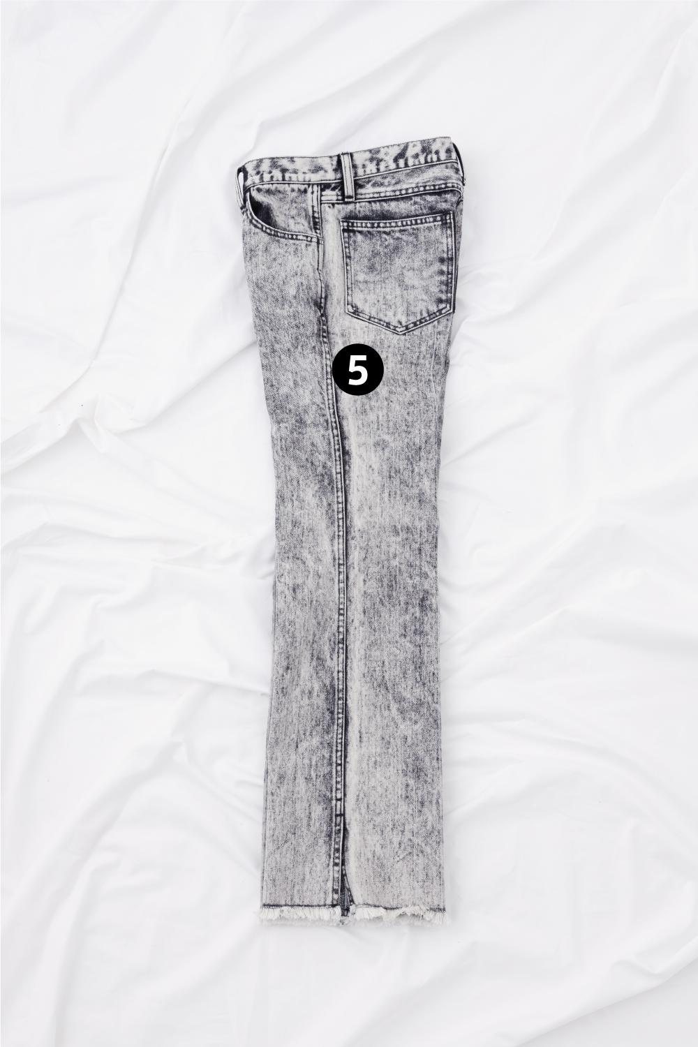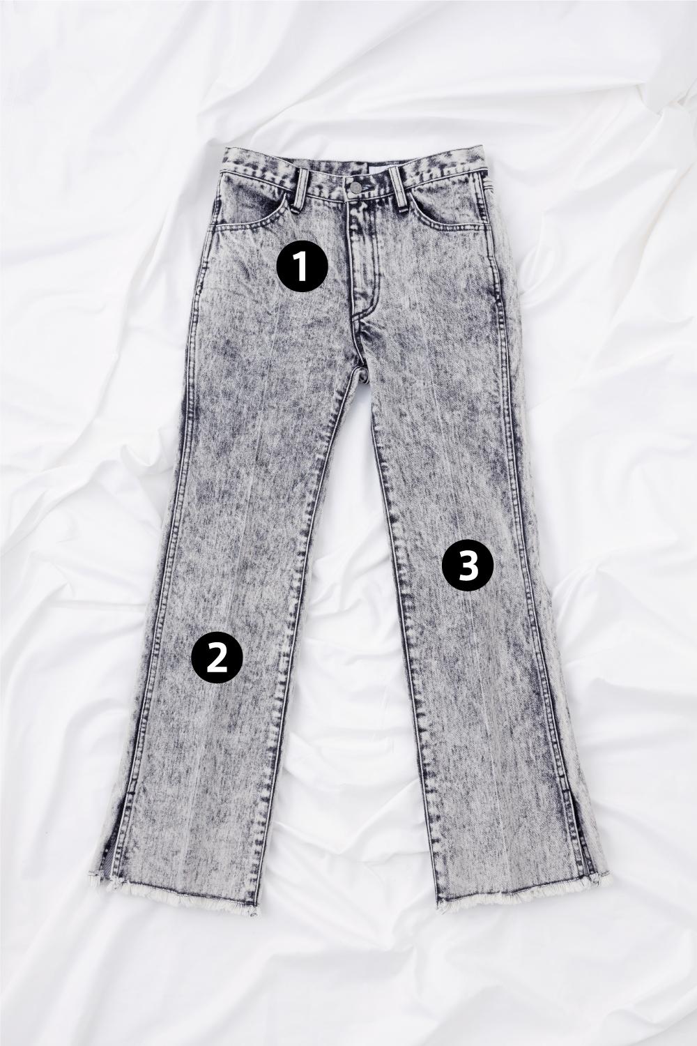 ❸ センタープレスのシェービング加工が縦の長さを強調し、脚がすっきり長く見えます。