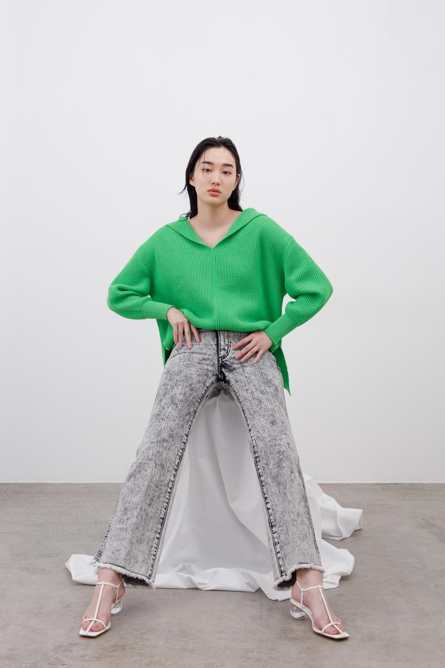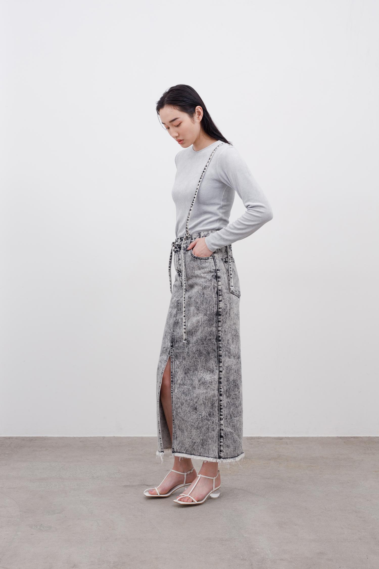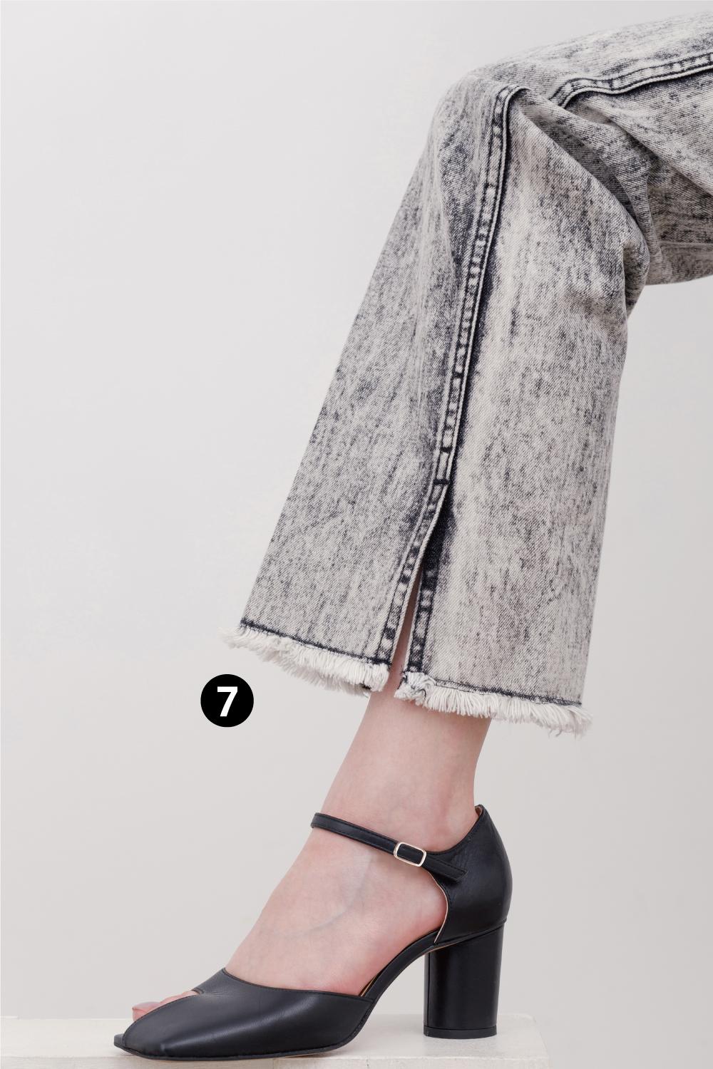 ❼ トレンドのサイドスリットは、どんな靴を合わせても軽く抜け感のあるスタイルにしてくれます。
