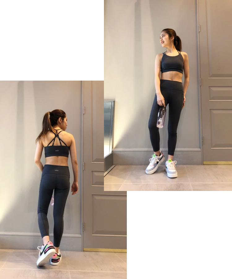 肉厚の生地で肌触りも良く、程よくホールドしてくれる設計はノンストレスでも安心感があり、ヨガやトレーニングに最適な着心地です。