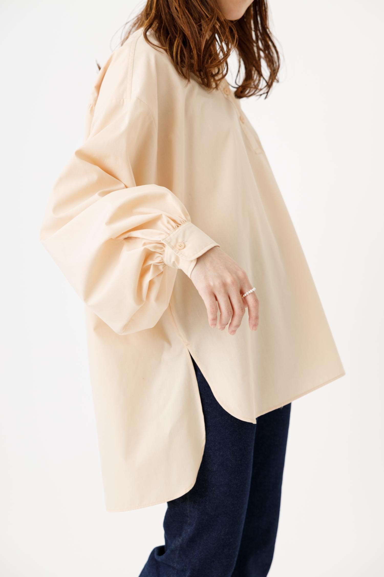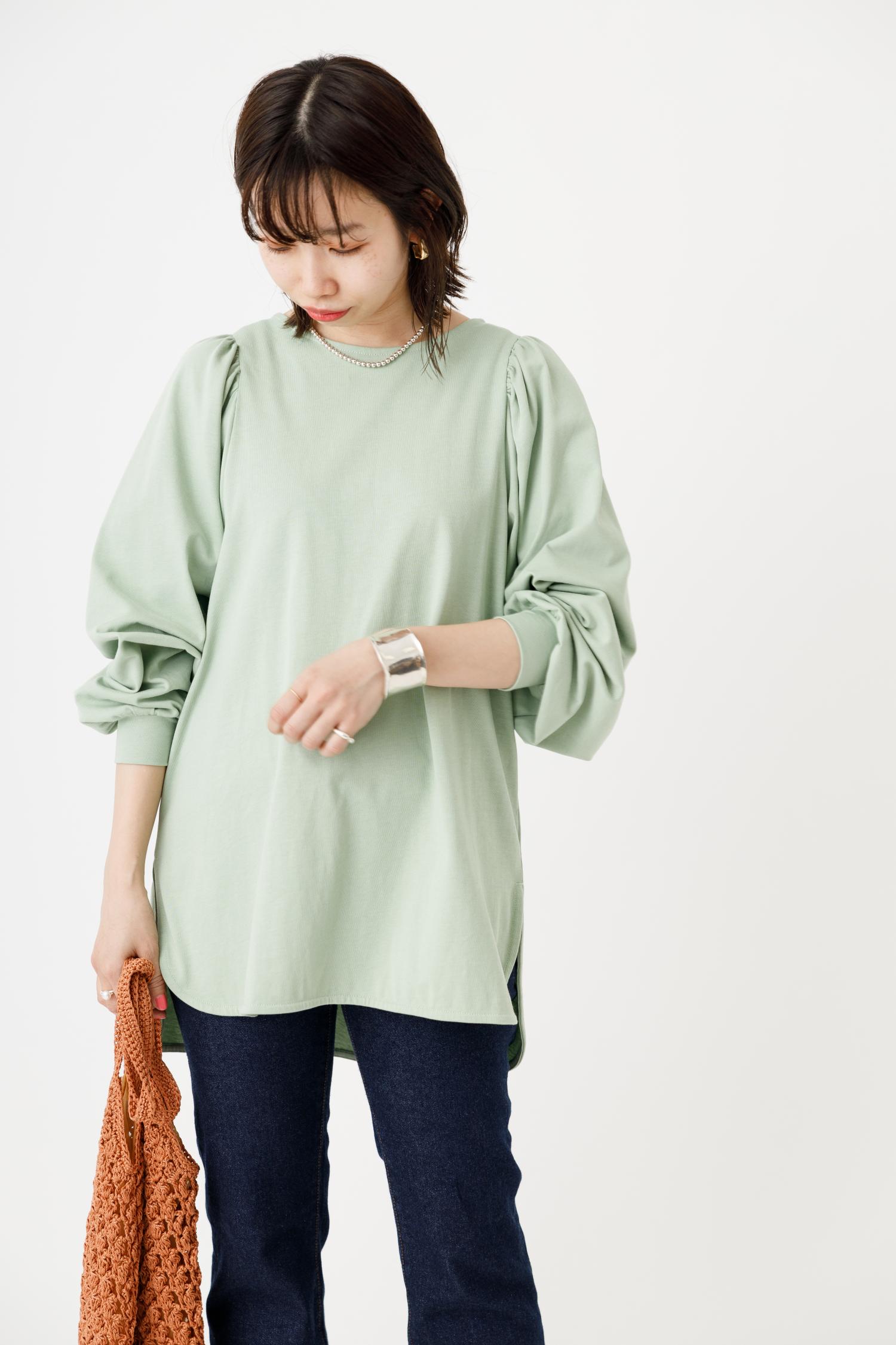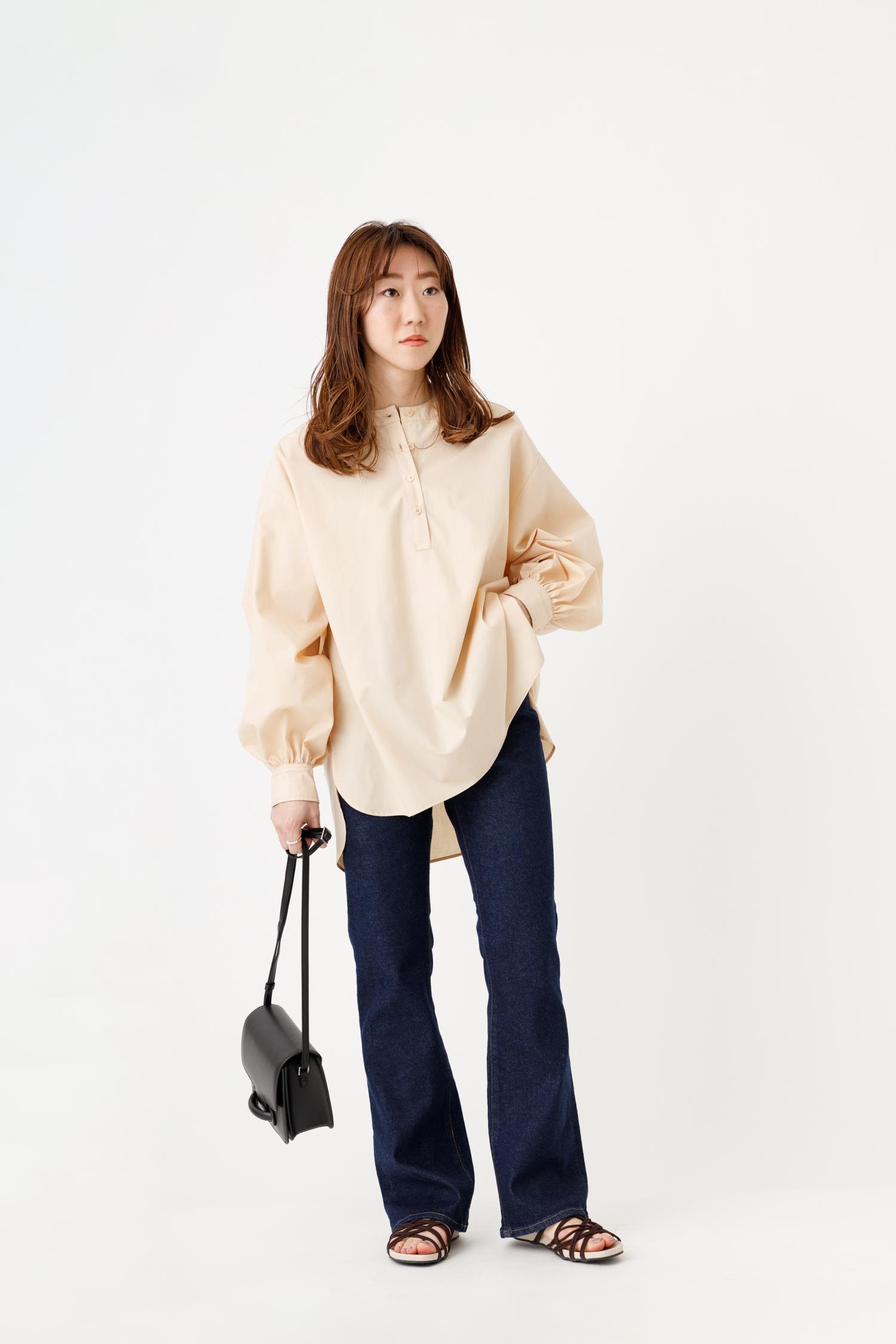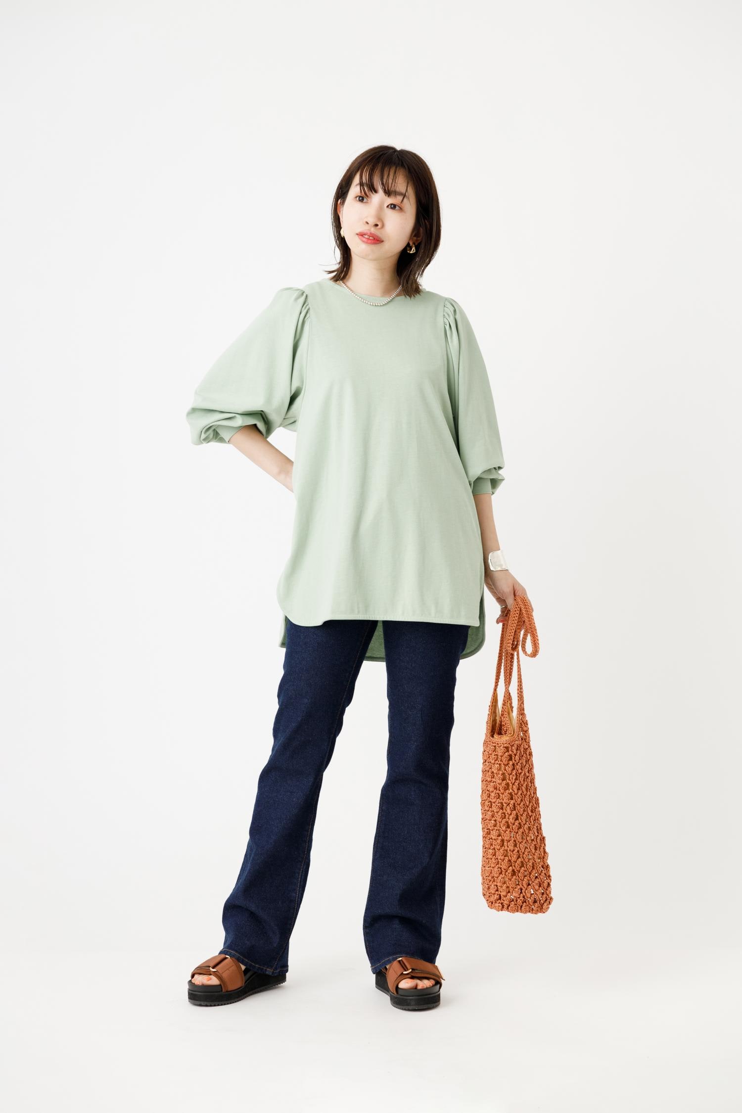 ボリュームスリーブチュニックシャツ×フラットサンダル