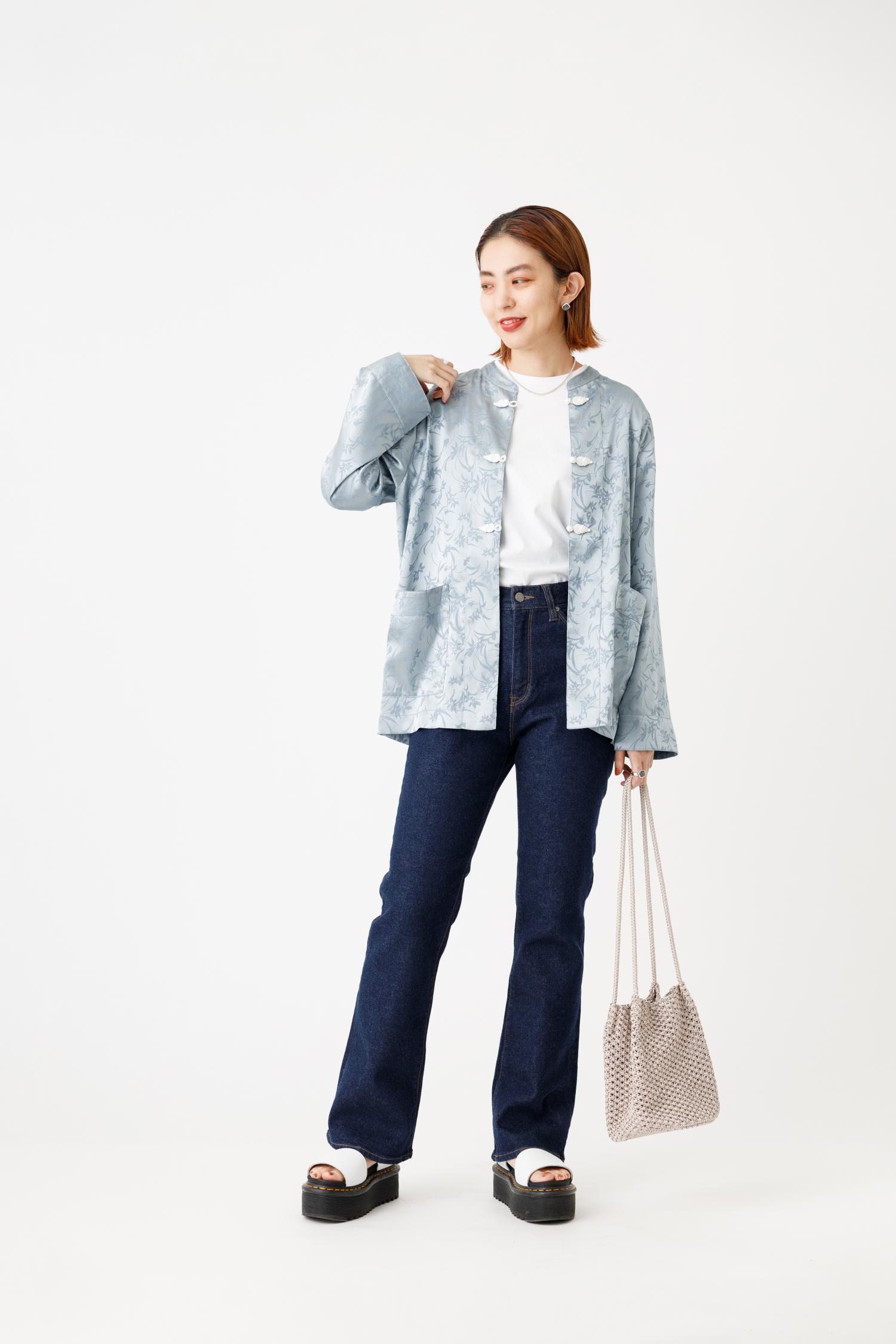 少し着丈長めのため、ヒールと合わせるとバランス良く着られます。