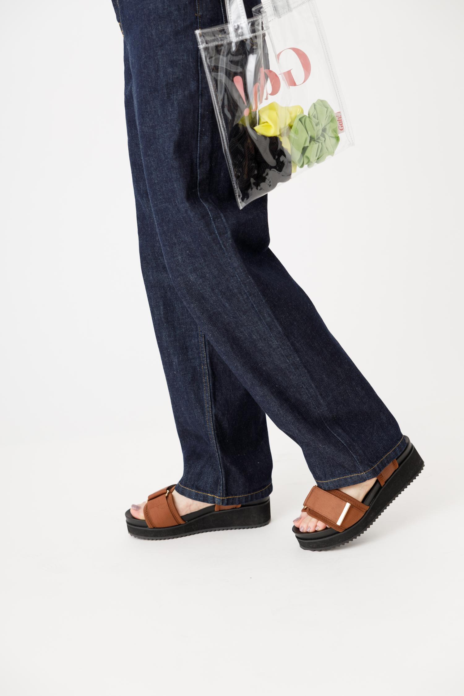 チェックボウタイシャツ×フラットオープントゥサンダル