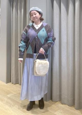 やわらかな質感をもっているので、身につけるものも薄手でやわらかな質感、装飾のあるデザインをセレクト。また寂しい印象にならないよう、足し算スタイルも必須。