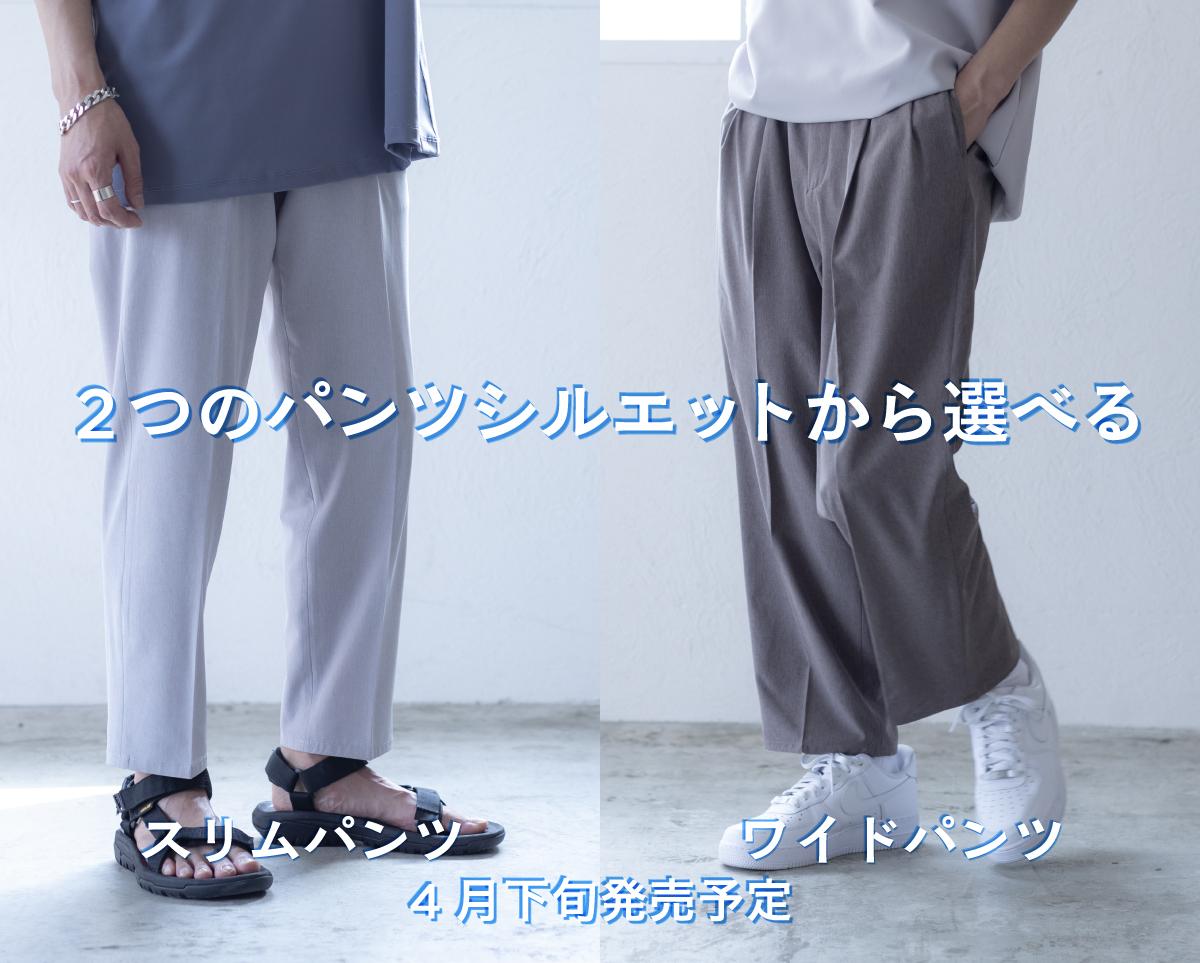 トレンドの淡色をTシャツで取り入れた爽やかコーデ。タックインすることでワイドパンツのタックデザインが見えてオシャレさアップ
