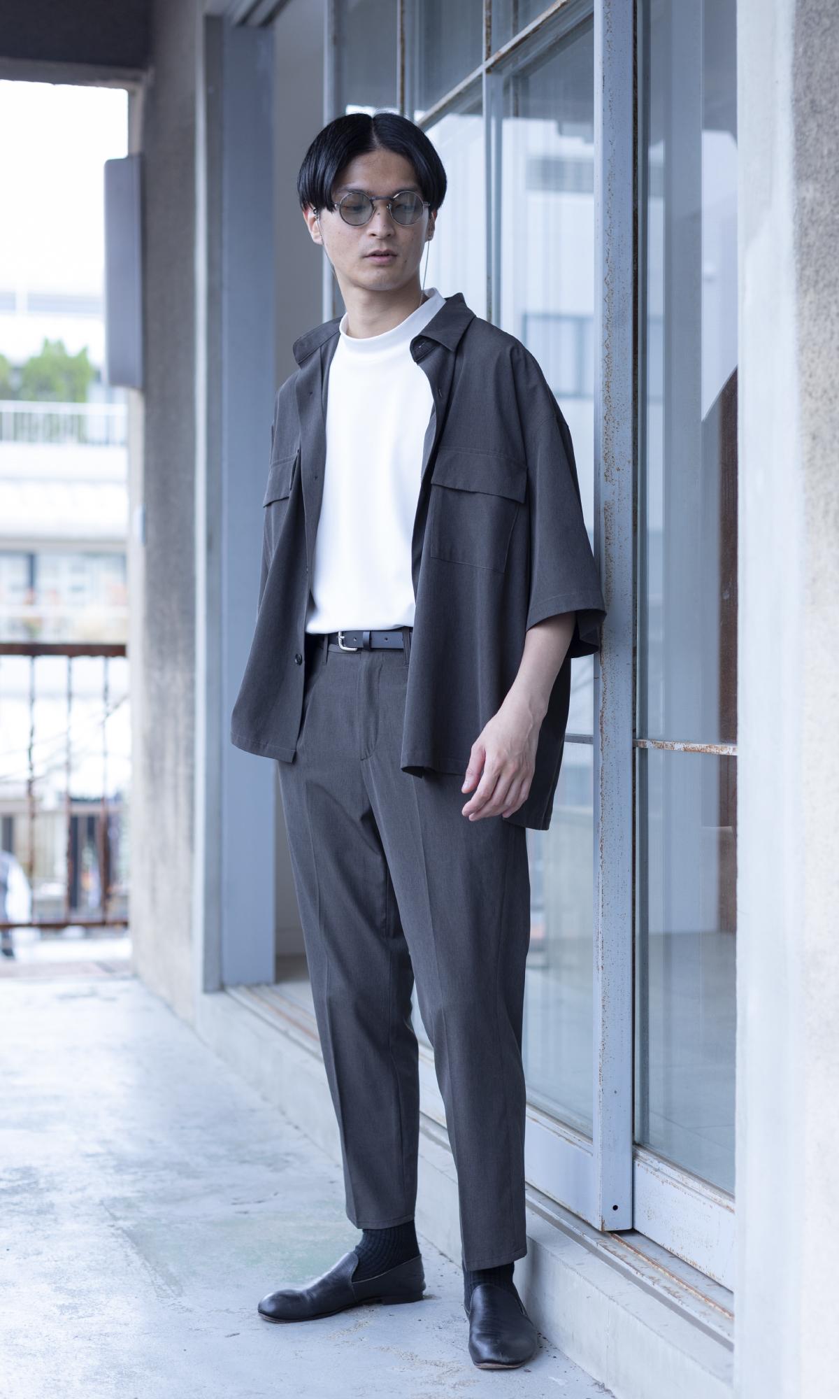 オーバーサイズのTシャツを着て、シャツからレイヤードさせる事でオシャレさアップ。(TシャツはLサイズを着用してます)