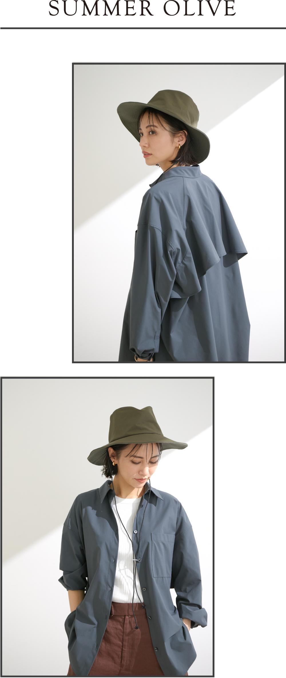 ヘルシーでどこかハンサムな印象のサマーオリーブはプラスするだけでいつものスタイリングをアップデート。つば端にワイヤーが入っているのでツバを折りあげたりニュアンスを出すことも可能です。