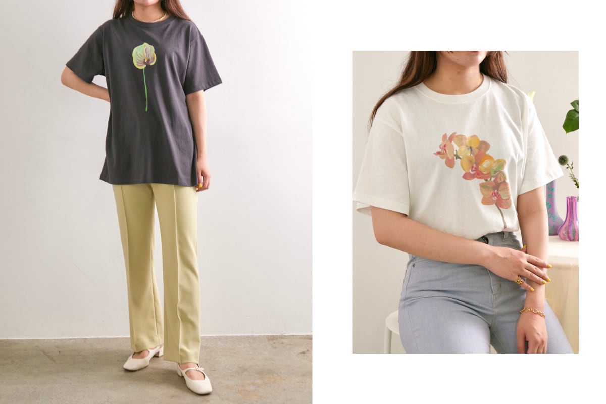 今回、特別に、マドモアゼル ロペ限定で、〈TOLIGHT〉デザイナー描き下ろしのフラワー柄Tシャツとフラワーベースを発売。