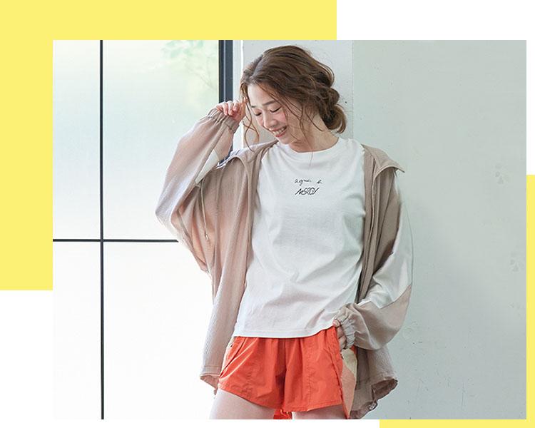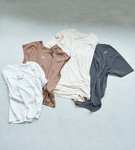 上品な素材感ながら汗染み防止の機能が嬉しいagnes b.×NERGYのTシャツや、速乾性の他オーバーサイズで腰下まで隠すシルエットが安心のオリジナルTシャツなど機能性に富んだカットソーが沢山。