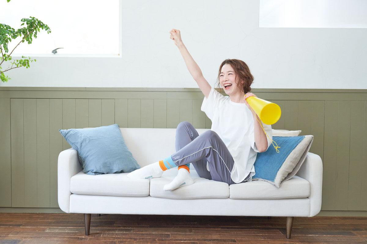お家でスポーツ観戦する機会も増えるなか、NERGYのリモート応援スタイルをモデル・YouTuberの石井亜美(いしい あみ)さんがご紹介。