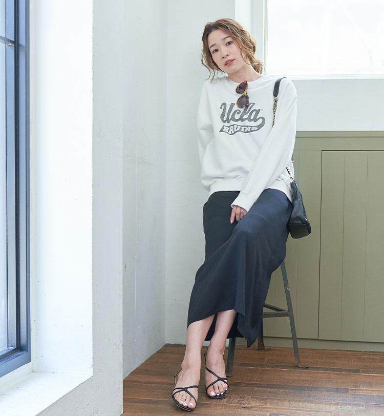 カレッジ系のアイテムを女性らしく着るのが好き。