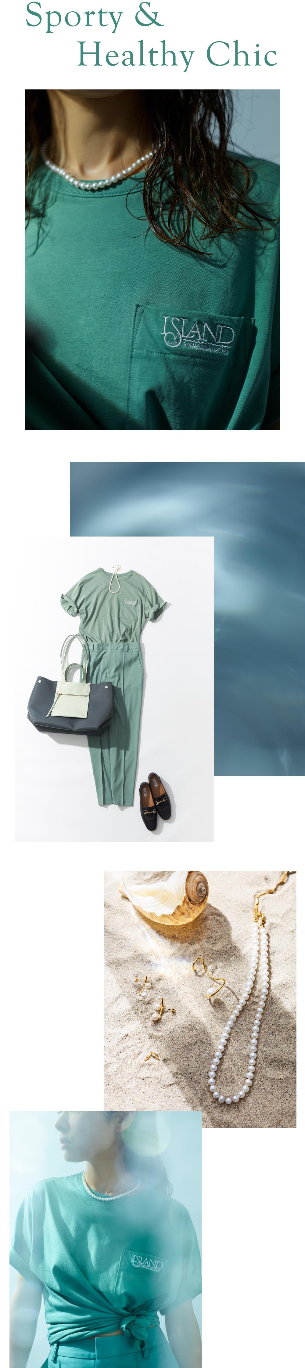 そして、本物だからこその艶が美しい淡水パールネックレスは、その日の気分に合わせて長さの調節ができるチェーンをあしらった優れもの。今季のお勧めです。
