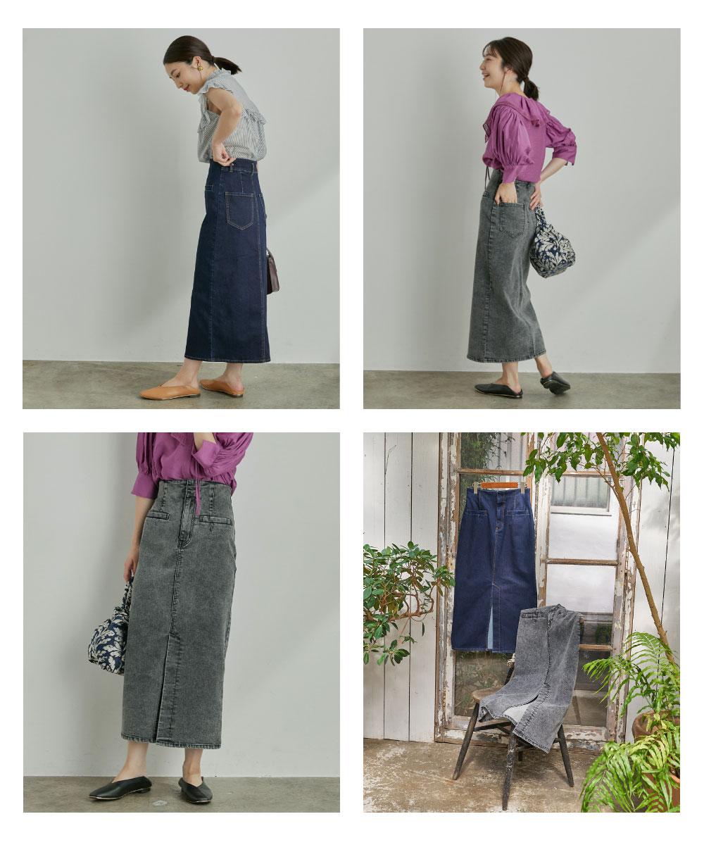 程よくストレッチが効いた生地で心地よいフィット感が魅力のタイトスカート。ベンツと言われる切込みを入れたすっきりとしたシルエットに、邪魔をしないデザインのハコポケットで綺麗な印象に仕上げました。