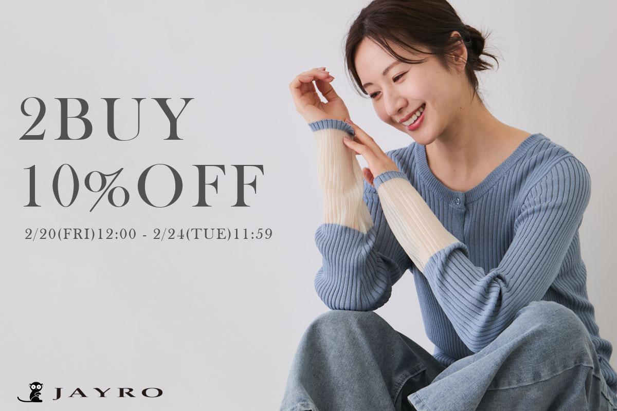 2/20(金)12:00~2/24(月)11:59の期間限定で2BUY10%OFFキャンペーンを開催中! お得にアイテムをGETできるこの機会をお見逃しなく!
