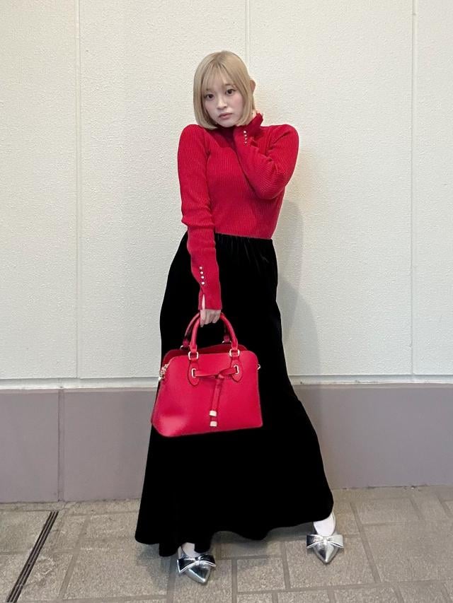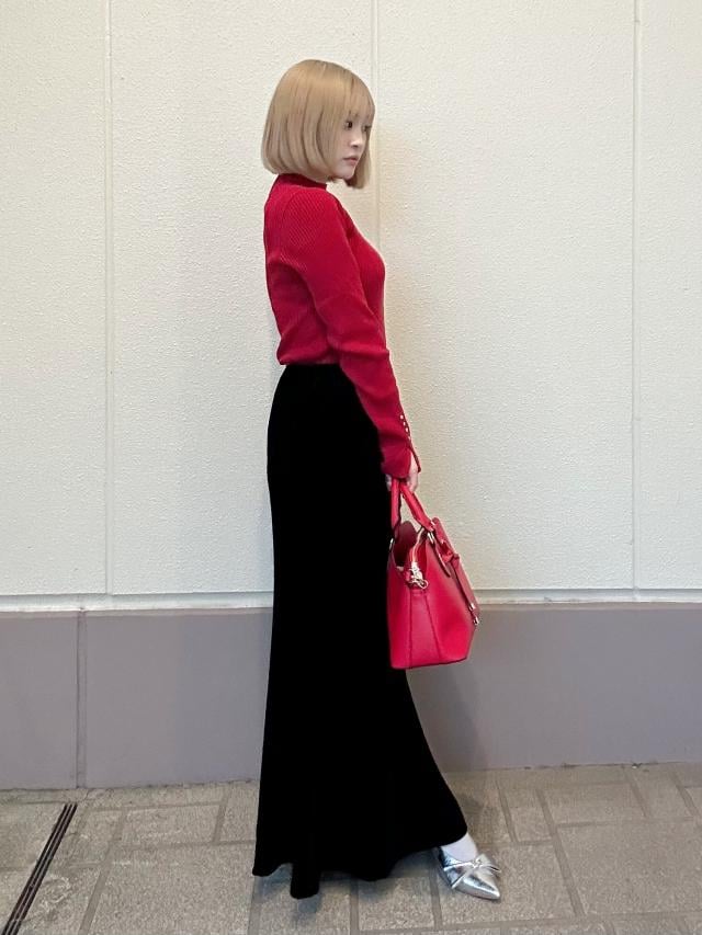 ベロア素材の肌触りが気持ちよく、体にフィットするのでスタイル良く見えます✨️