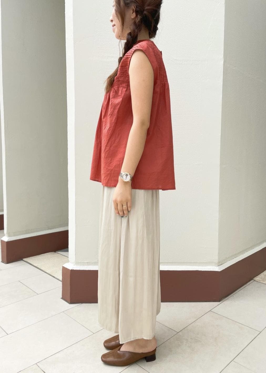 トップスをテラコッタカラーにして