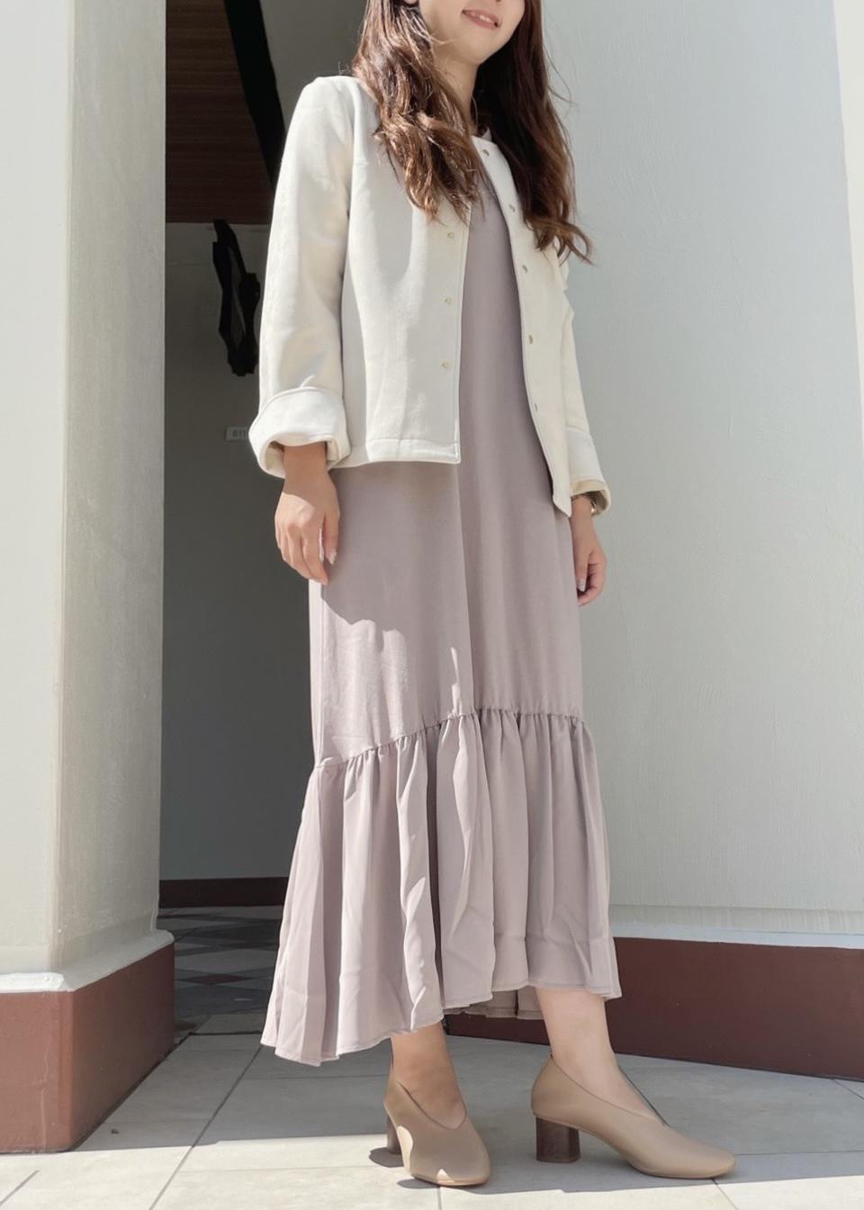 柔らかな肌触り抜群なマシュマロブルゾン を、羽織り上品なスタイルにしました。 夏に使えるワンピースに ブルゾンを羽織ることで秋にも 使えるコーディネートに♪ 少し肌寒くなってきたら ニットや長袖ブラウスも入れても◎