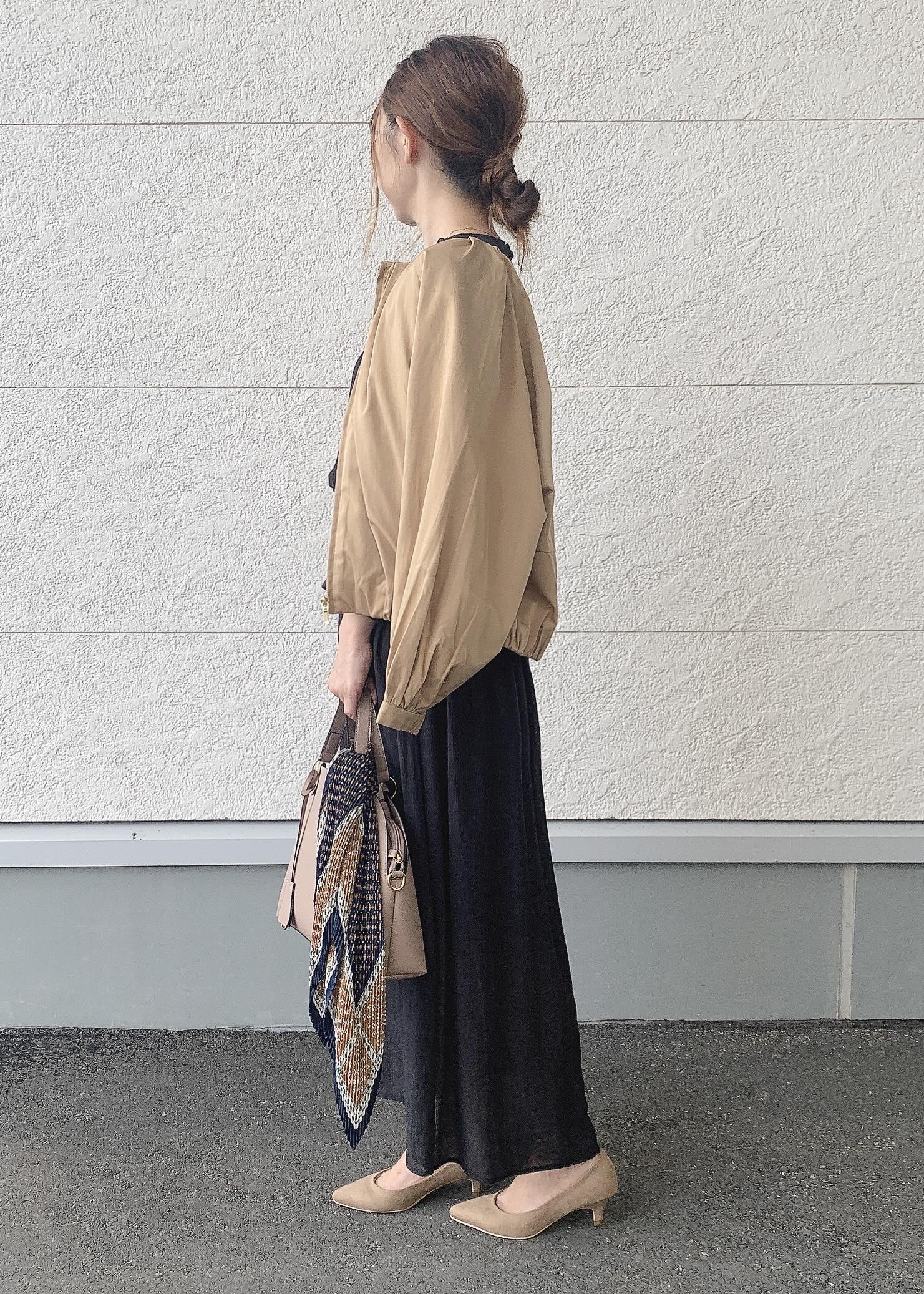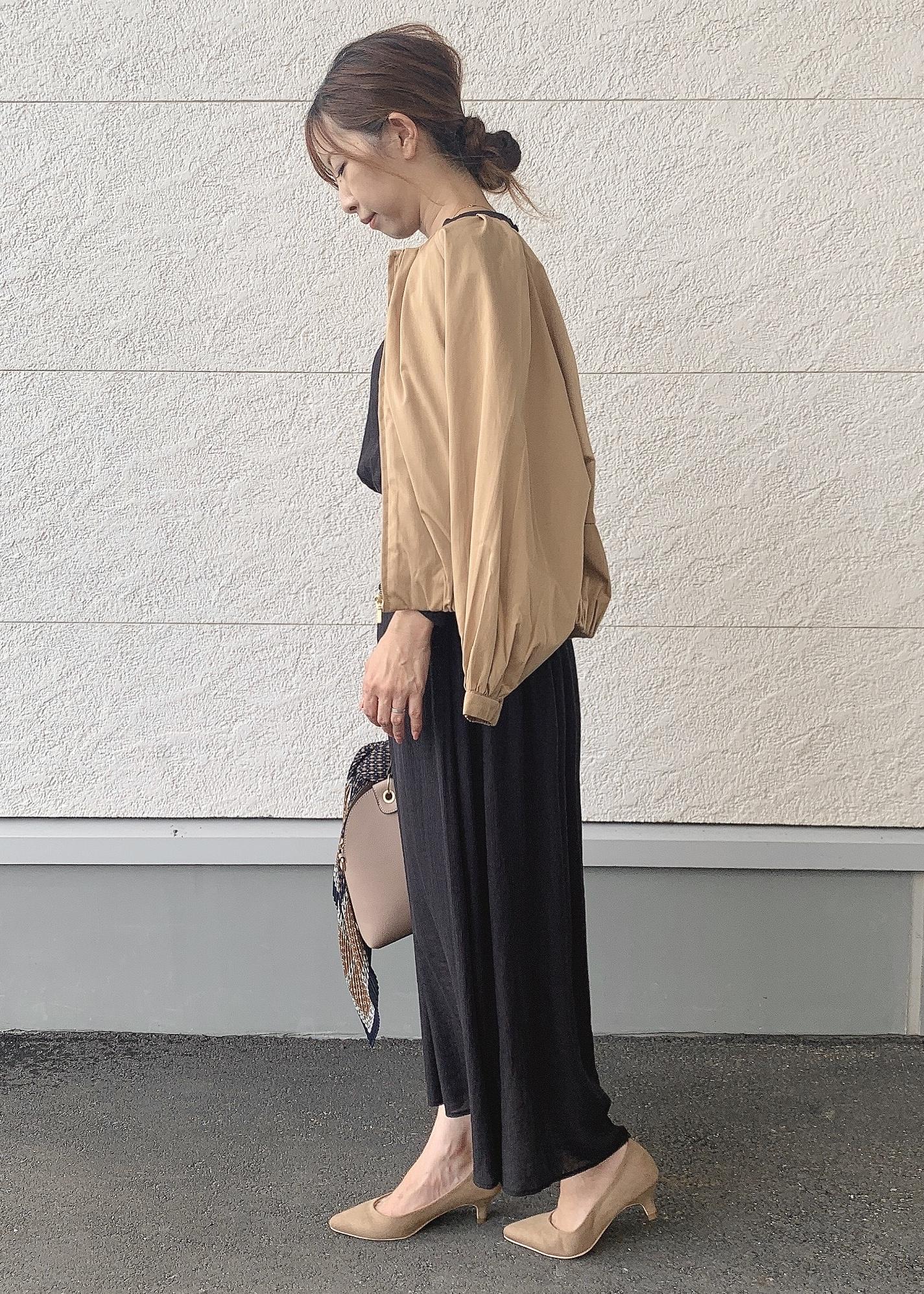 綺麗めワンピースにブルゾンを羽織り大人ベーシックコーディネートに◎