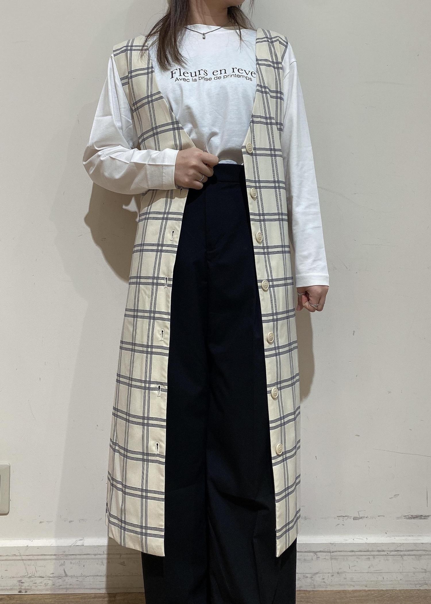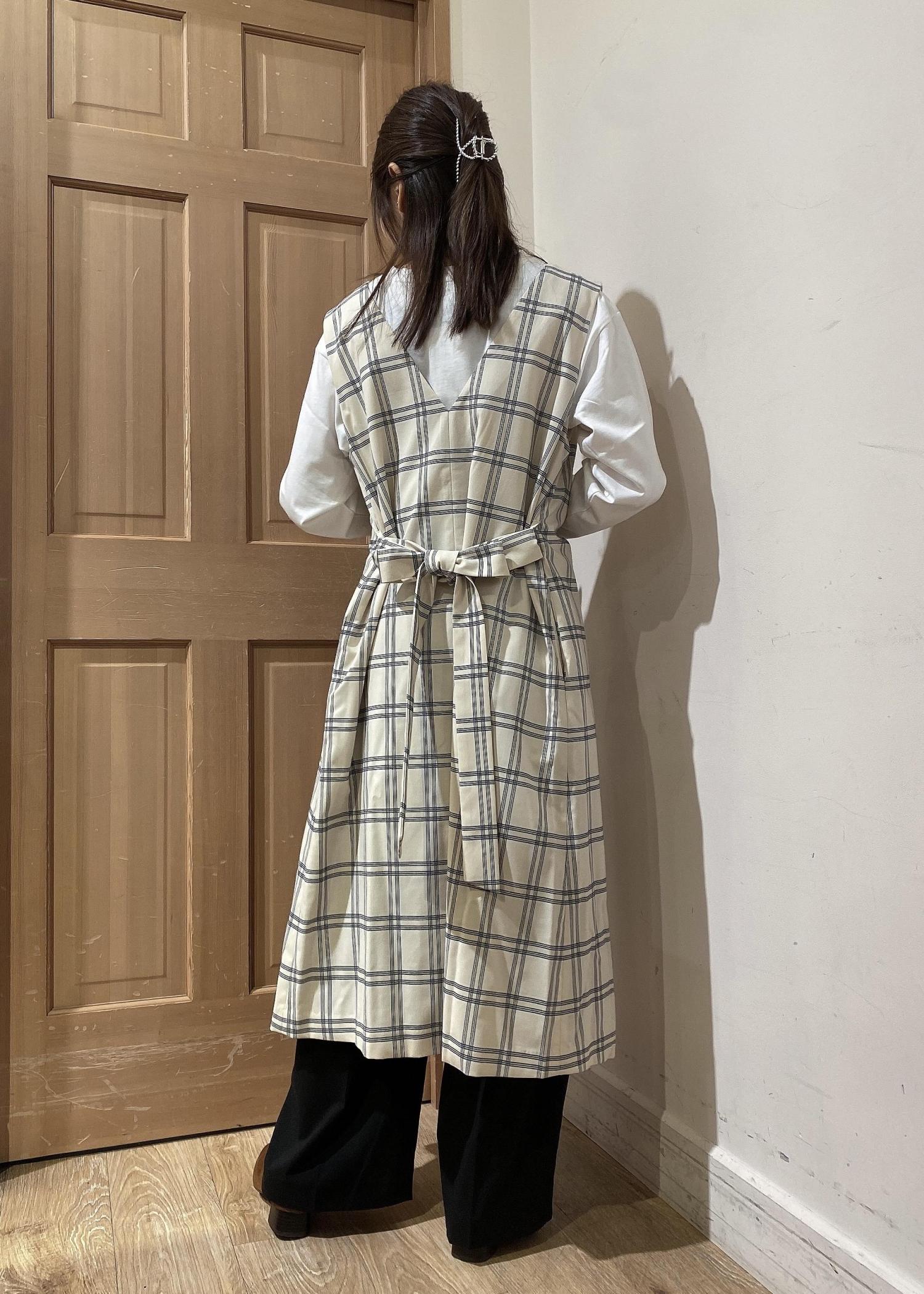 ボタンを開けてジレスタイルにしました。 前後2WAYでワンピースにもなるので着回し力抜群です!